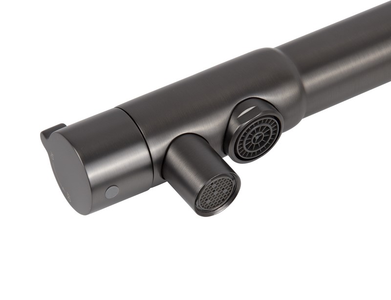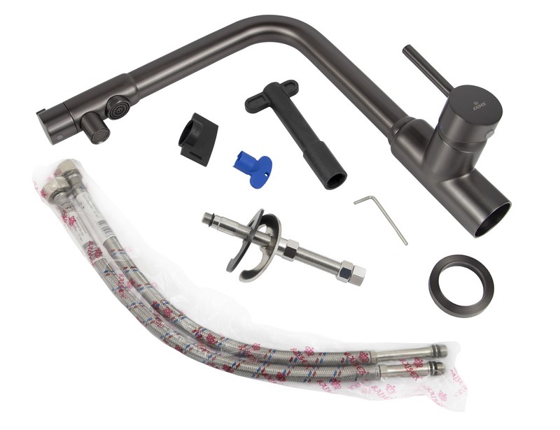 Смеситель Kaiser 13044-5 из коллекции Teka совмещен с краном для питьевой воды. Особенность модели заключается в сдвоенном изливе, внутри которого проходят две трубки, для питьевой и проточной воды. Два аэратора для раздельного выхода проточной и фильтрованной воды, исключают возможность их смешивания. Подача питьевой воды осуществляется переключателем на конце излива. Преимущество совмещенных смесителей заключается в том, что не нужно делать дополнительных отверстий на мойке и устанавливать отдельный кран для питьевой воды.