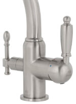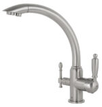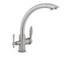 Смеситель Kaiser 31244-2 из коллекции Vincent совмещен с краном под фильтр. Для подачи питьевой воды на корпусе смесителя размещен отдельный переключатель. Смеситель имеет два аэратора для раздельного выхода проточной и фильтрованной воды, что исключает их смешивания. Преимущество совмещенных смесителей заключается в том, что не нужно делать дополнительных отверстий на мойке и устанавливать отдельный кран для питьевой воды. Ручки смесителя имееют эргономичную форму. Он подойдет не только к современной кухне, но и выполненной в классическом стиле.