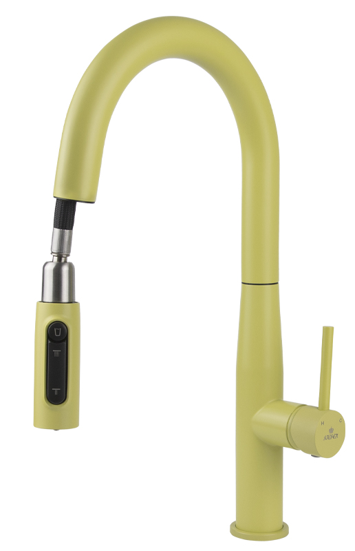 Смеситель KAISER Vita для кухни с вытяжной лейкой, под фильтр, Ø25 /Нержавейка /Жёлтый