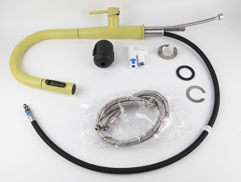 Смеситель KAISER Vita для кухни с вытяжной лейкой и подачей фильтрованной воды, цвет покрытия жёлтый