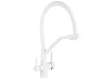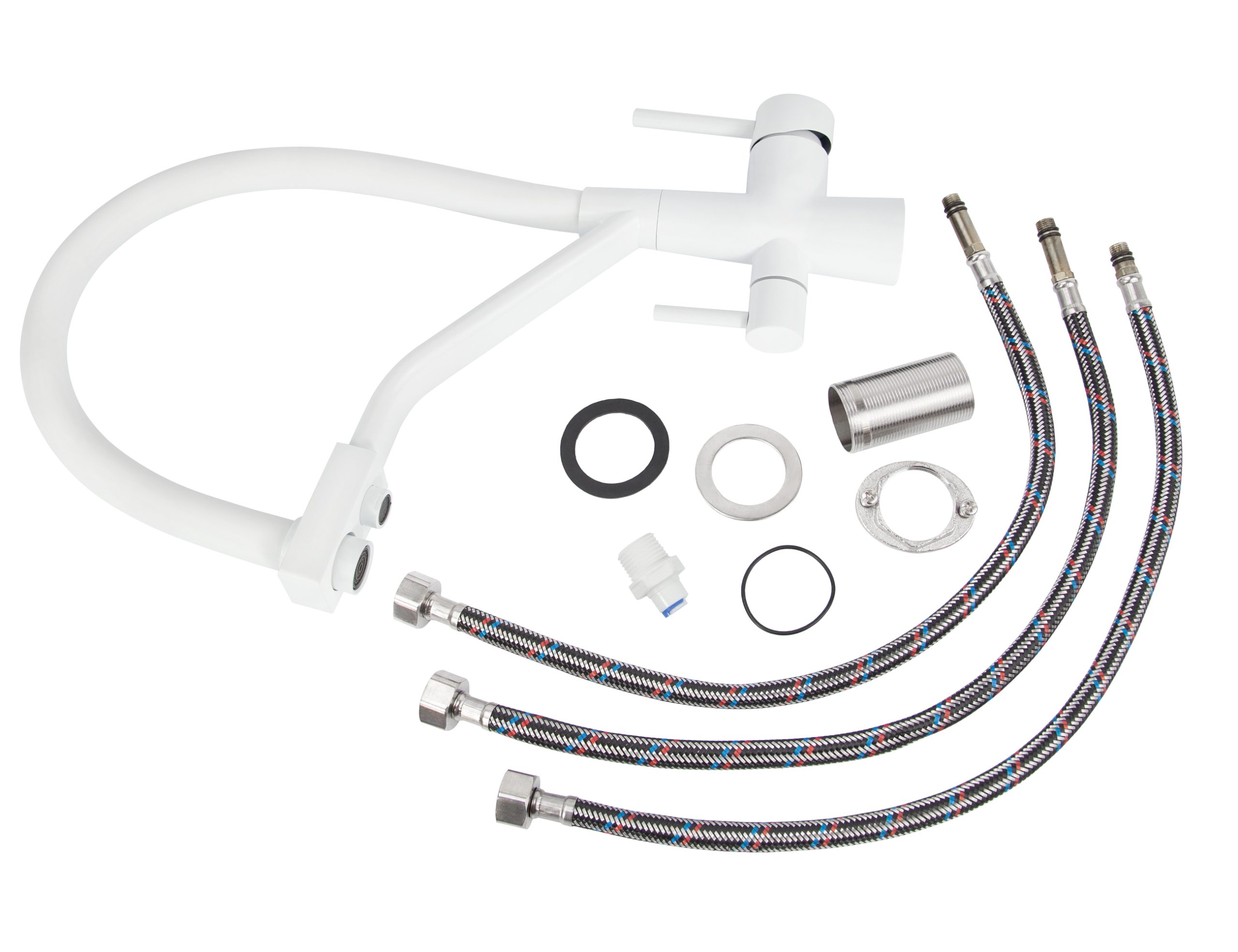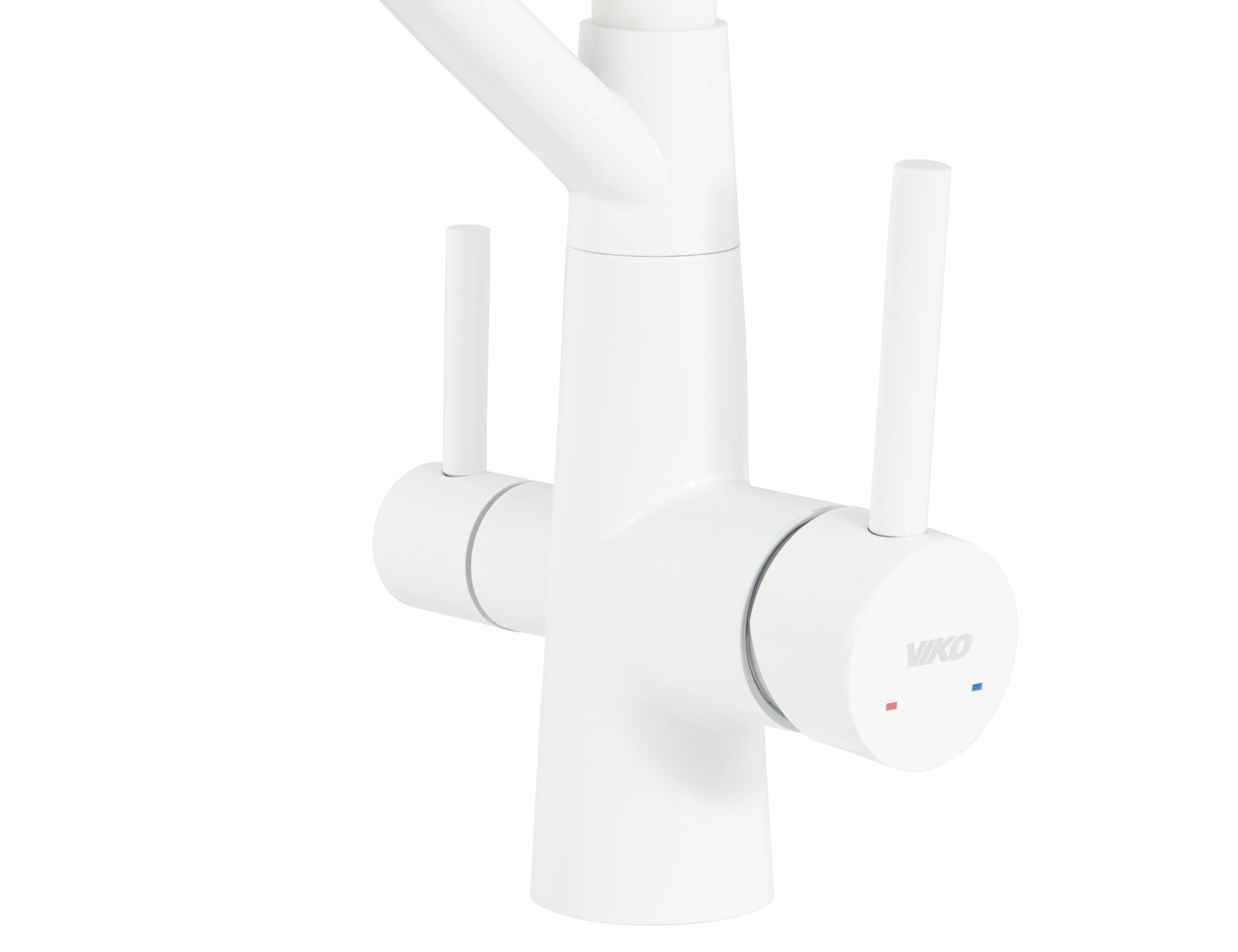 Смеситель VIKO для кухни под фильтр с гибким изливом Ø35, нерж. сталь (корпус/излив: белый матовый)