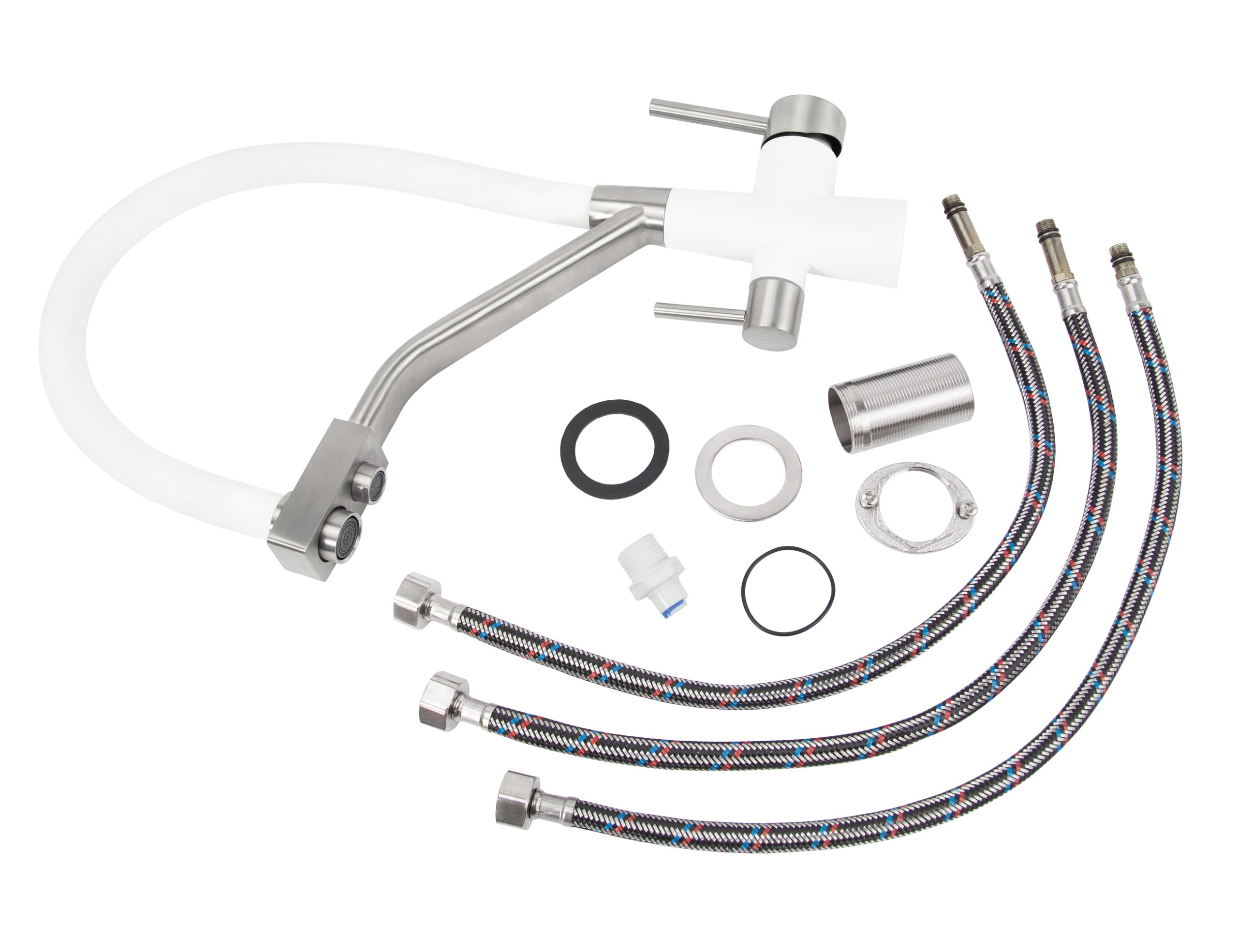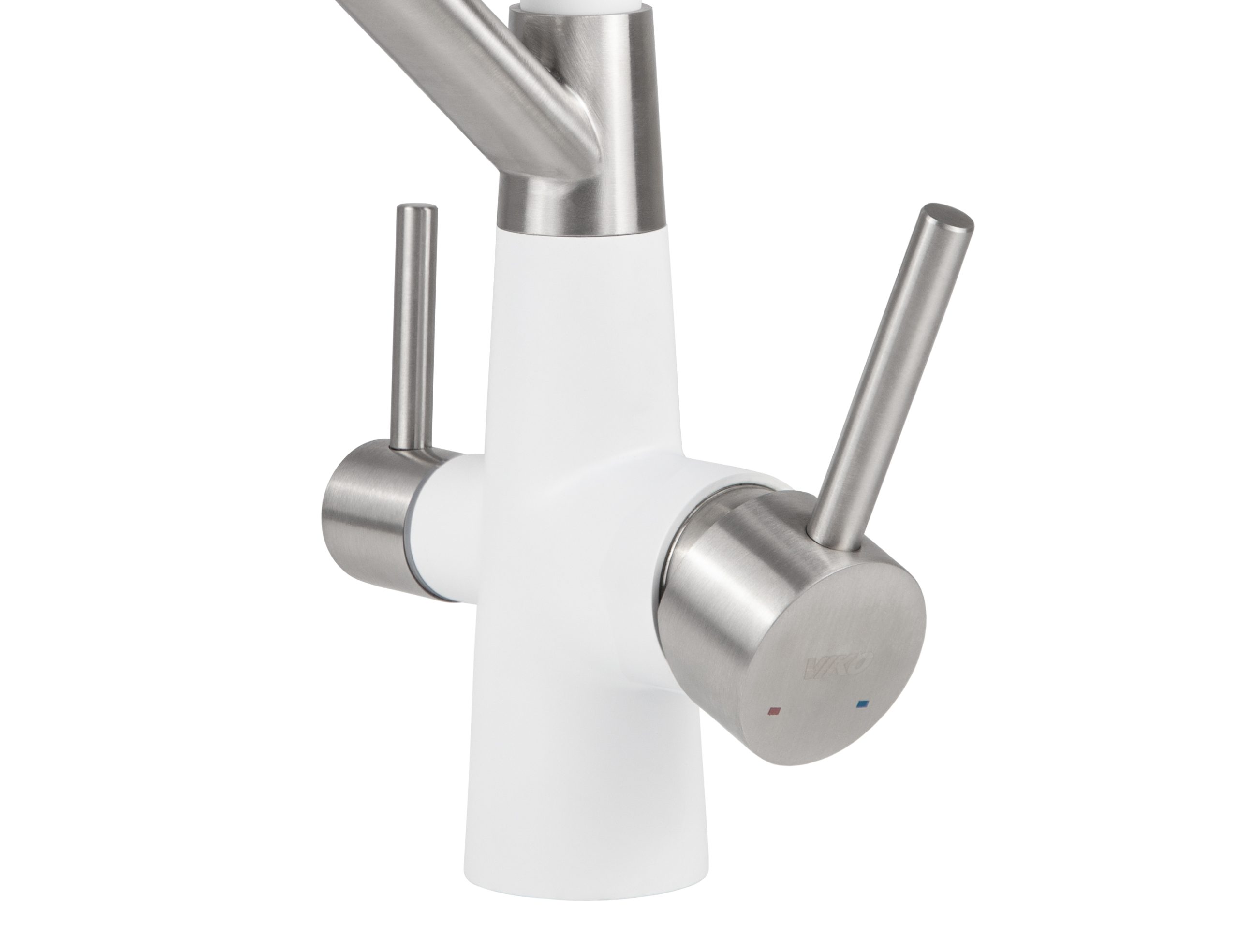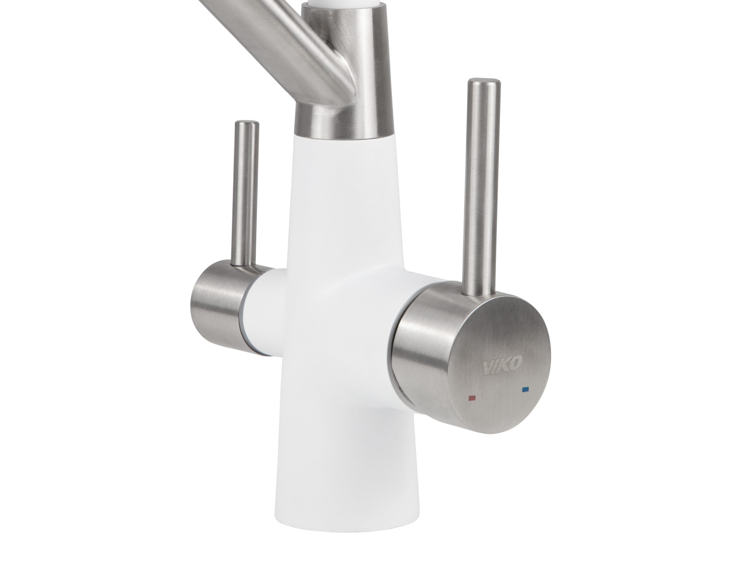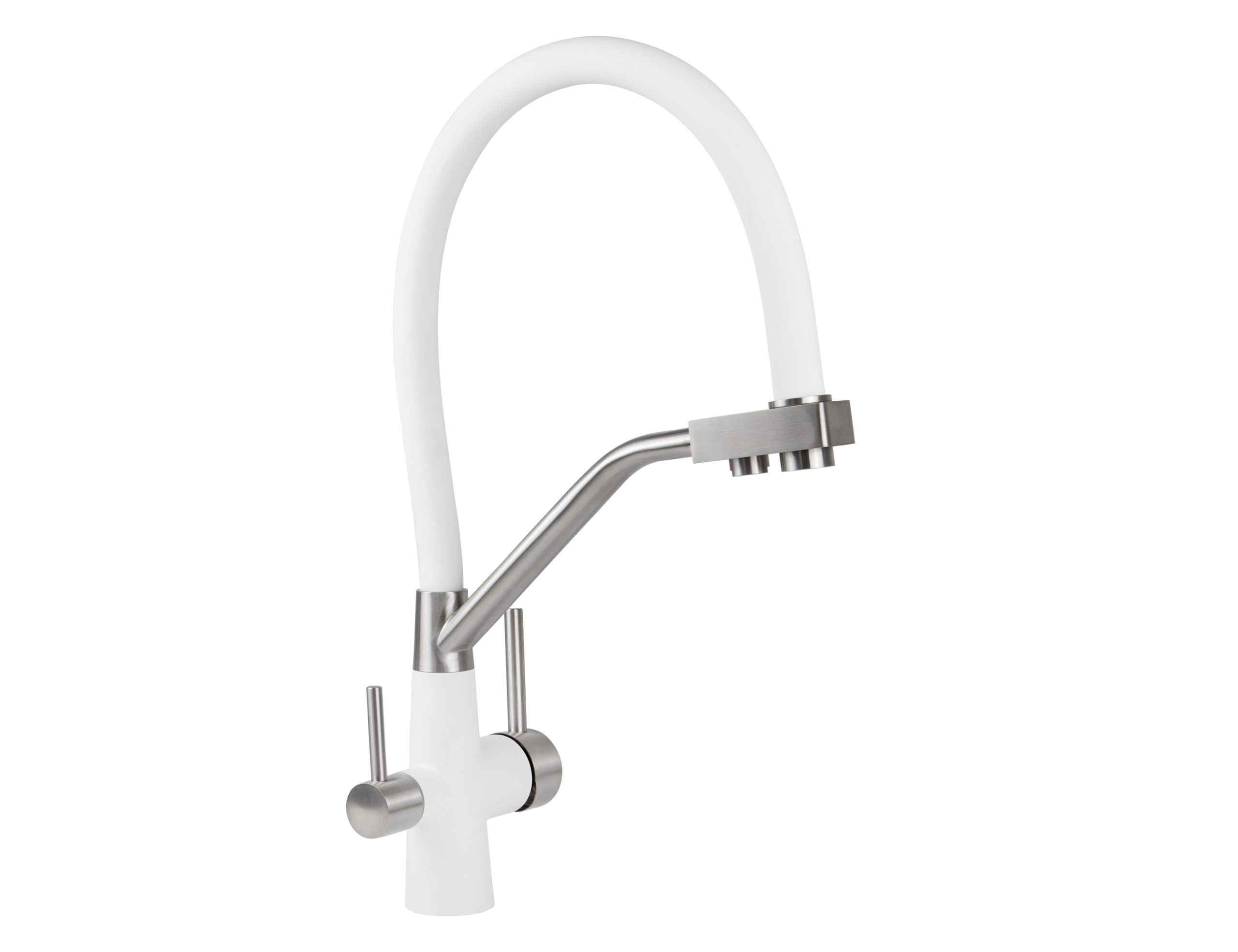 Смеситель VIKO для кухни под фильтр с гибким изливом Ø35, нерж. сталь (корпус/излив: белый, серебро/белый)