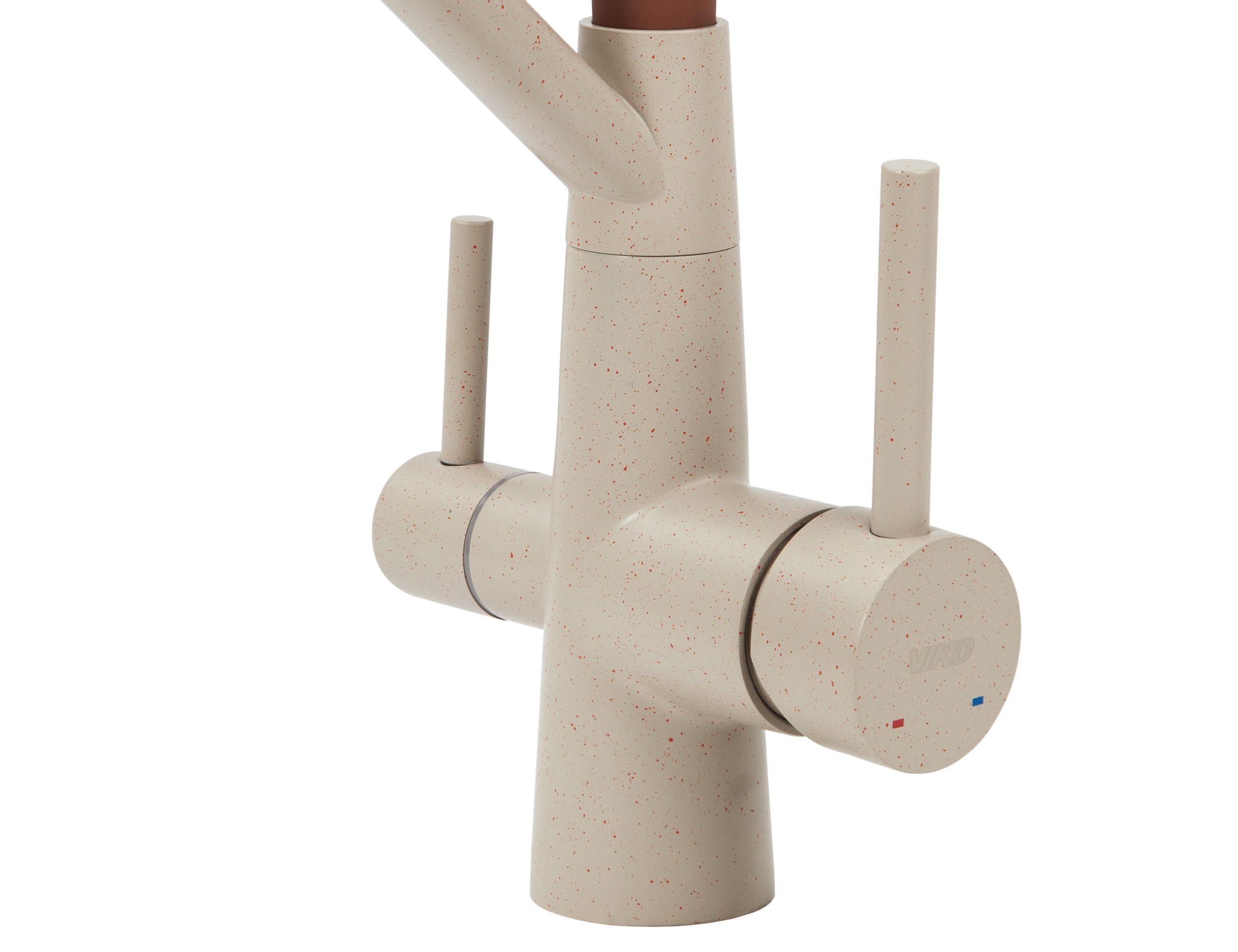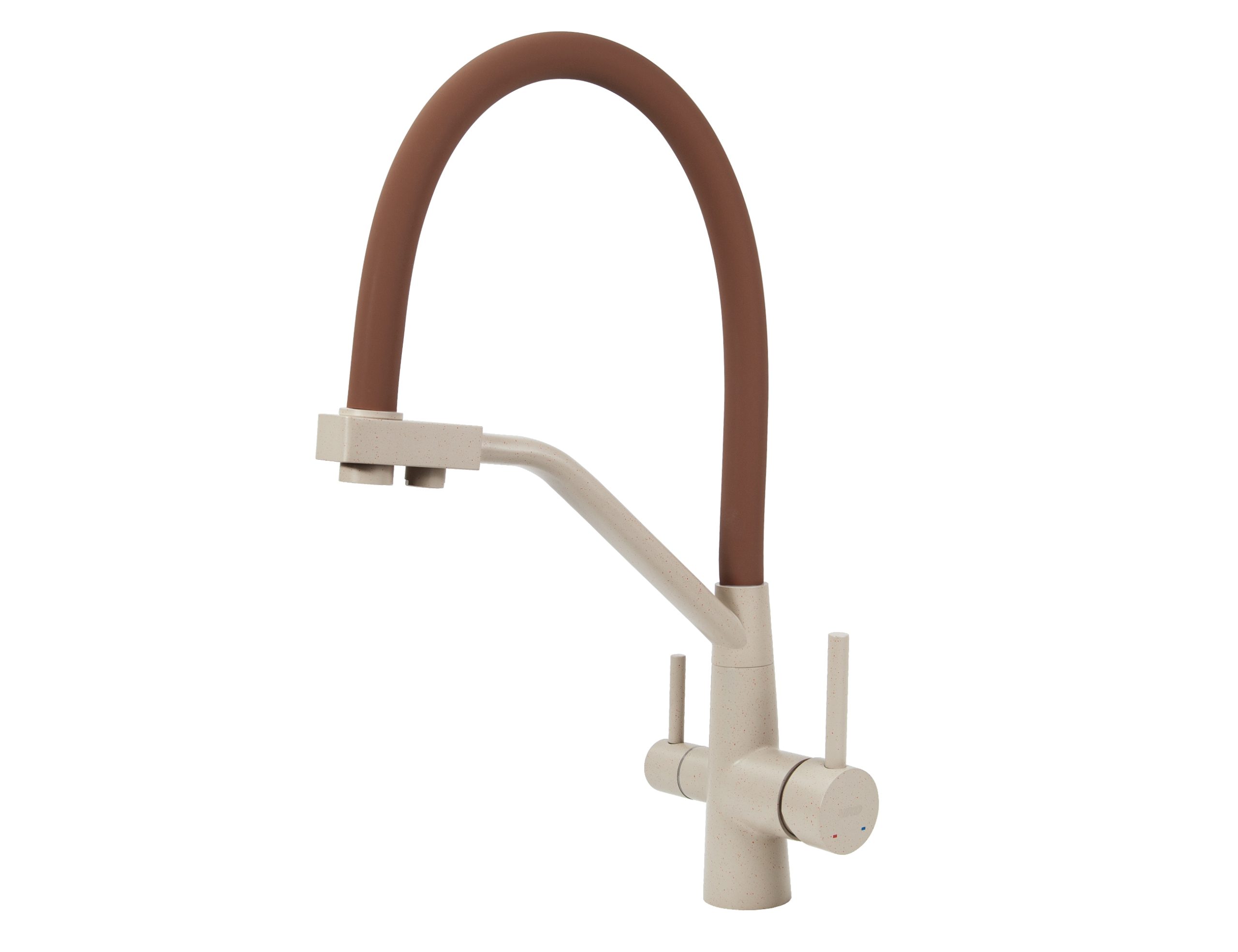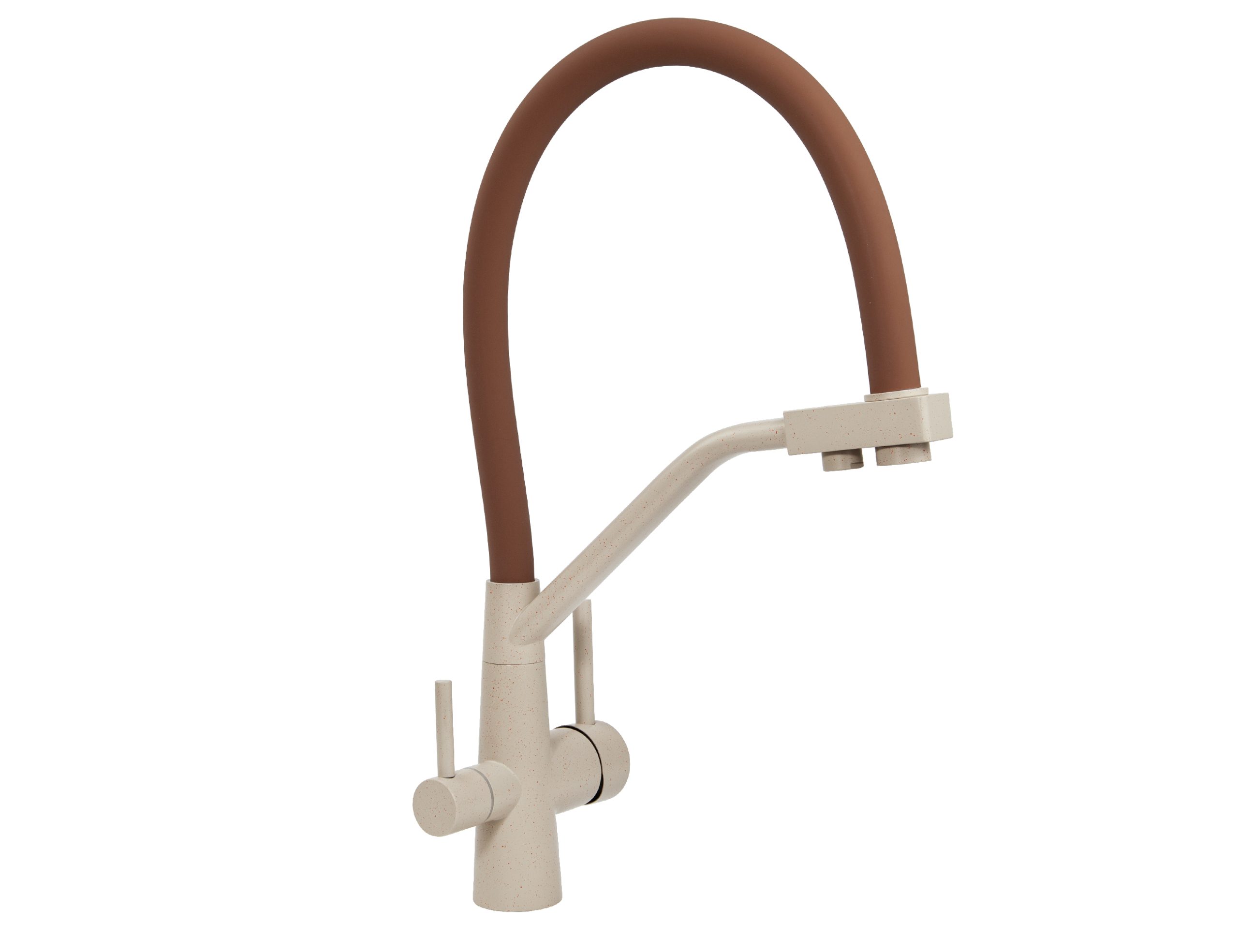 Смеситель VIKO для кухни под фильтр с гибким изливом Ø35, нерж. сталь (корпус/излив: бежевый мрамор/коричневый)