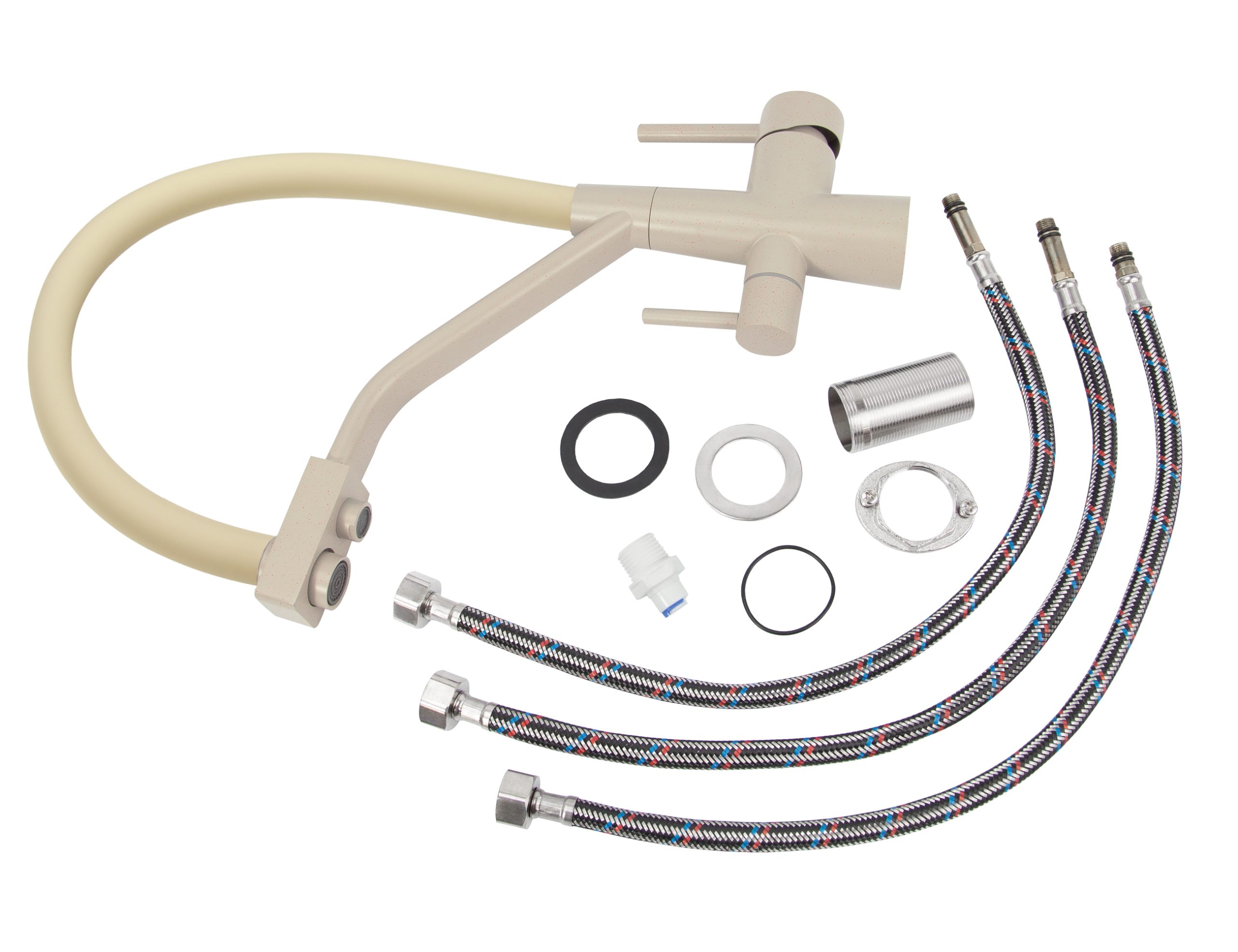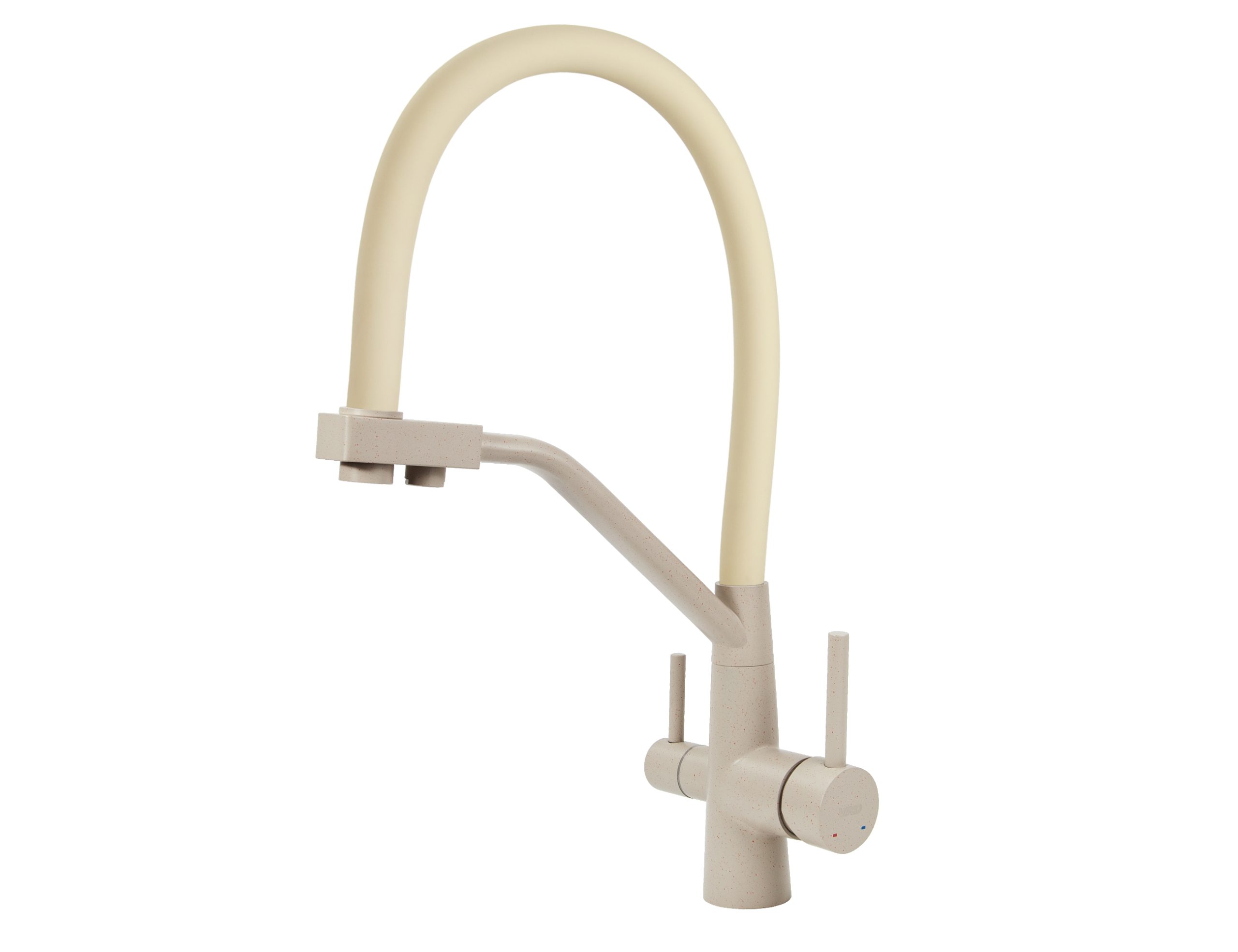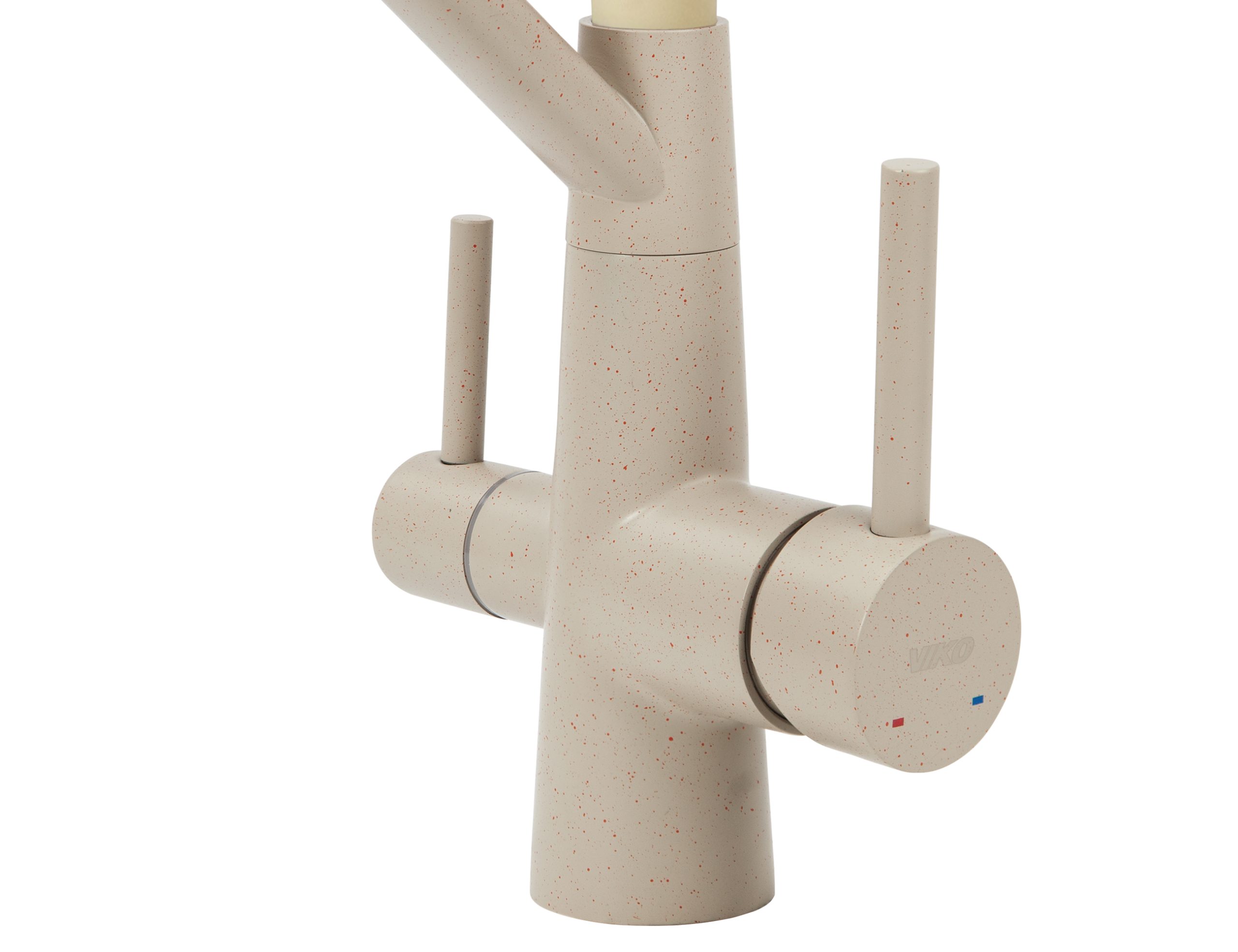 Смеситель VIKO для кухни под фильтр с гибким изливом Ø35, нерж. сталь (корпус/излив: бежевый мрамор/жасмин)