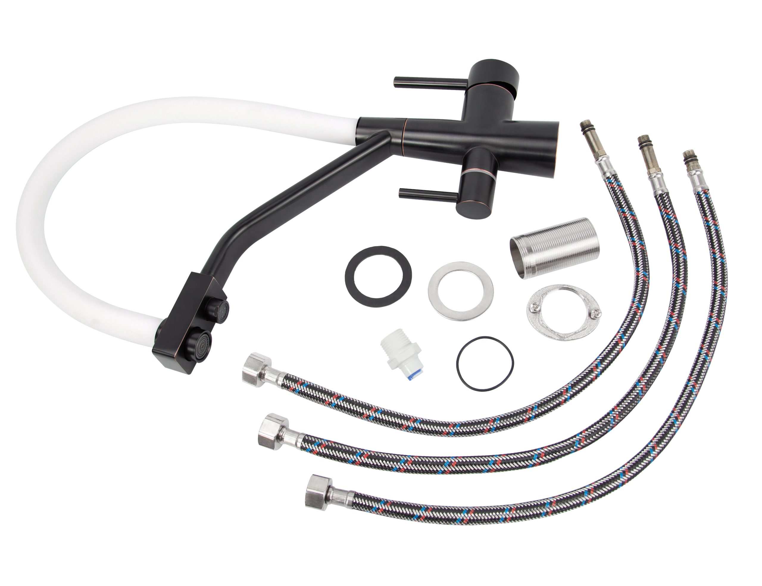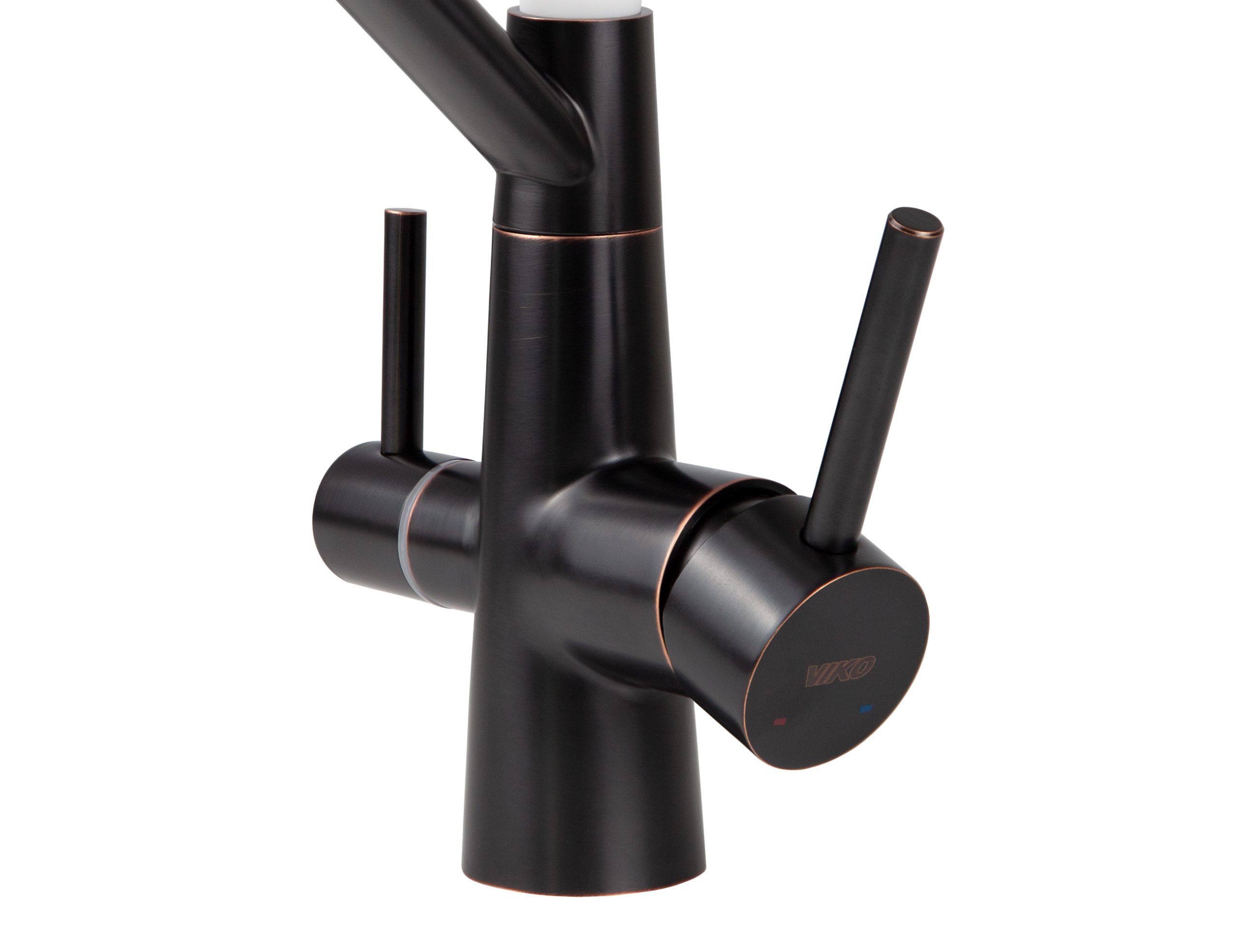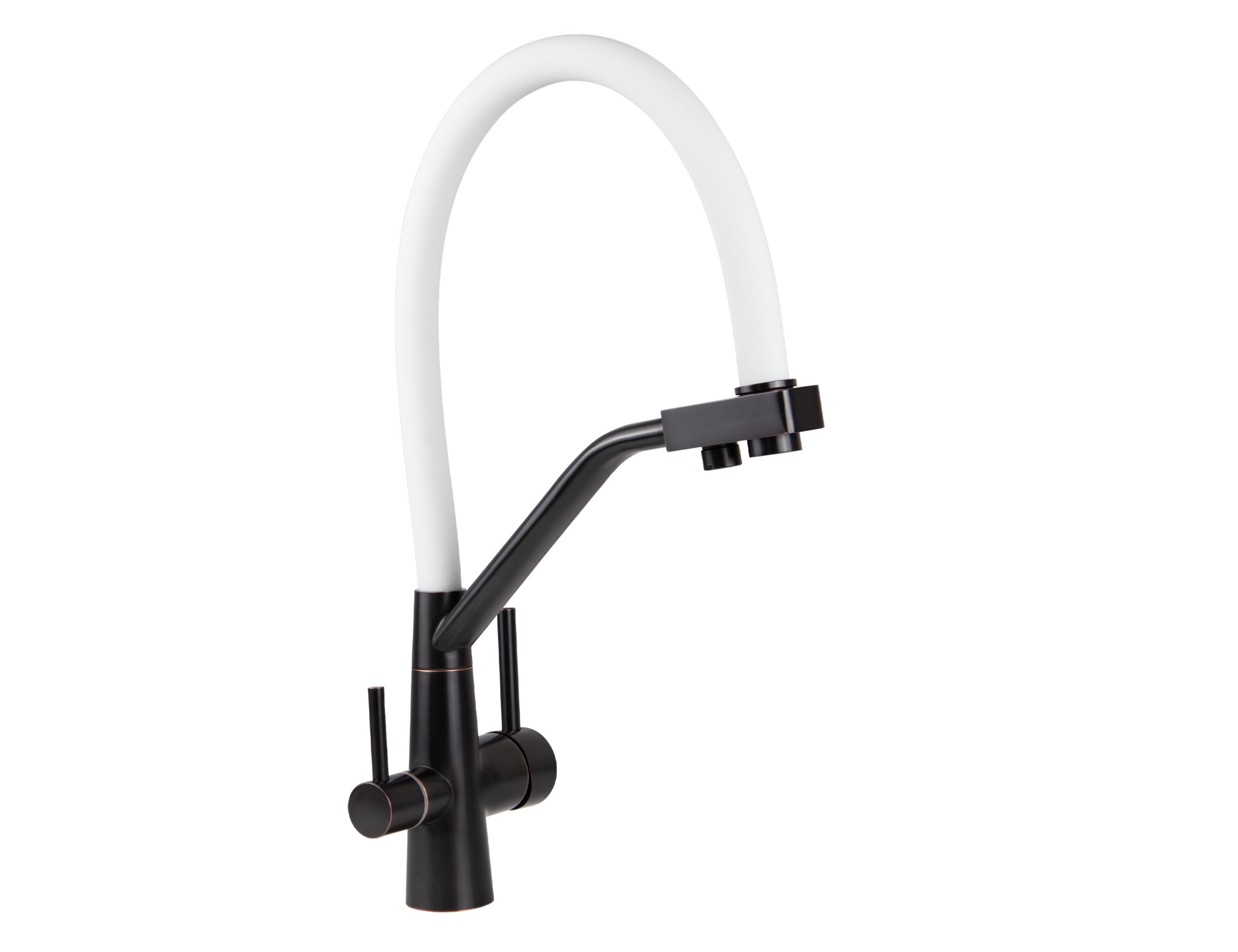 Смеситель VIKO для кухни под фильтр с гибким изливом Ø35, нерж. сталь (корпус/излив: бронза черная/белый)