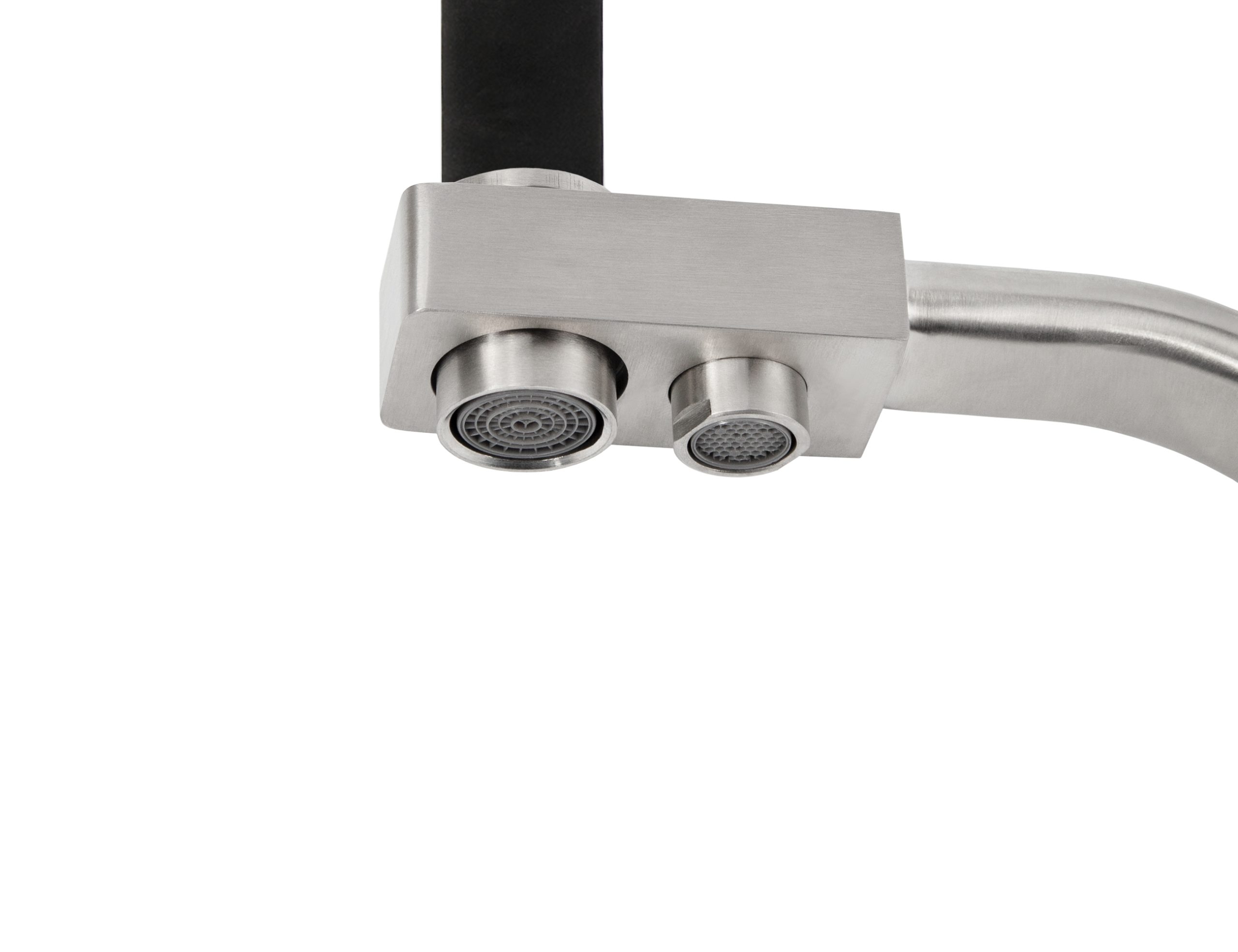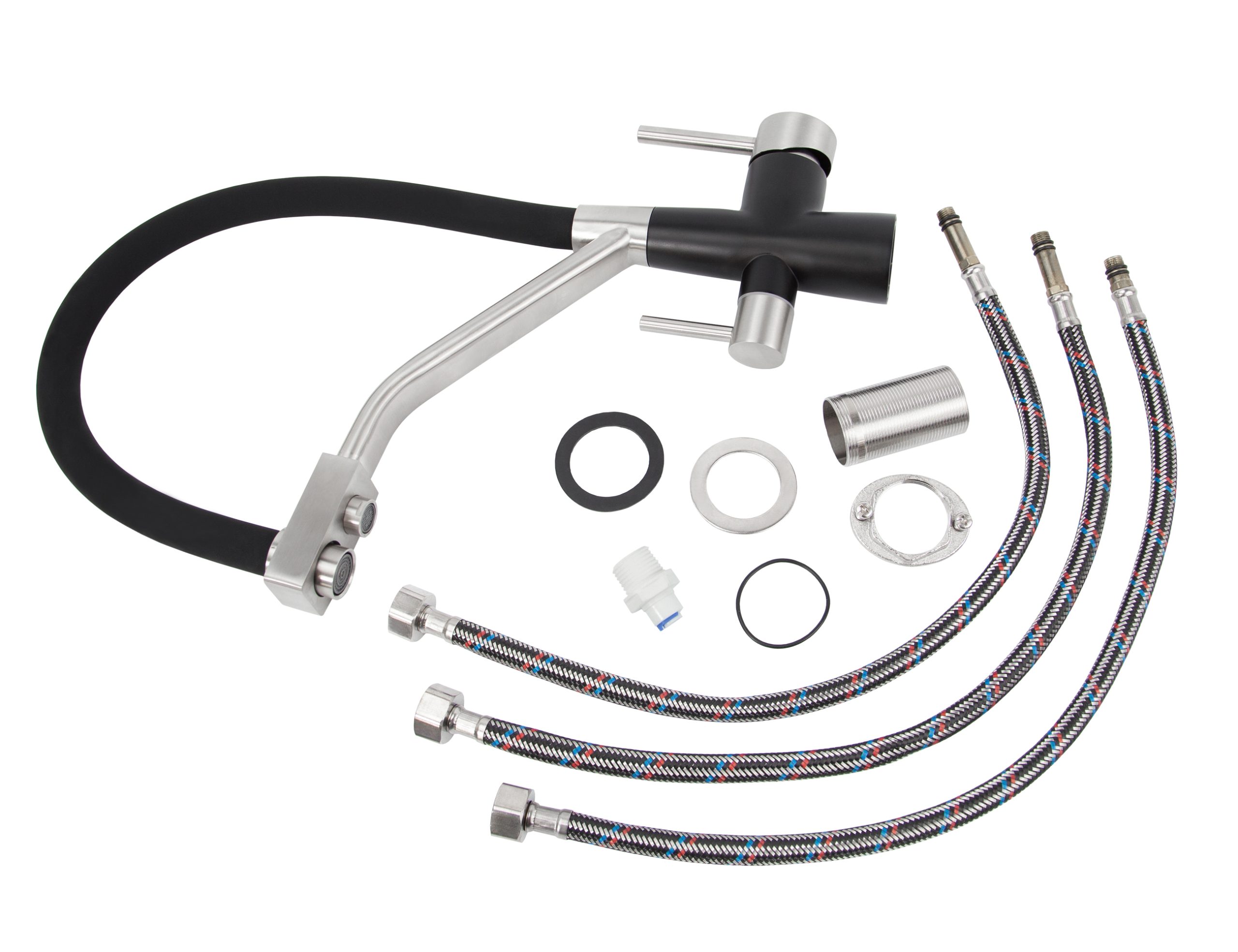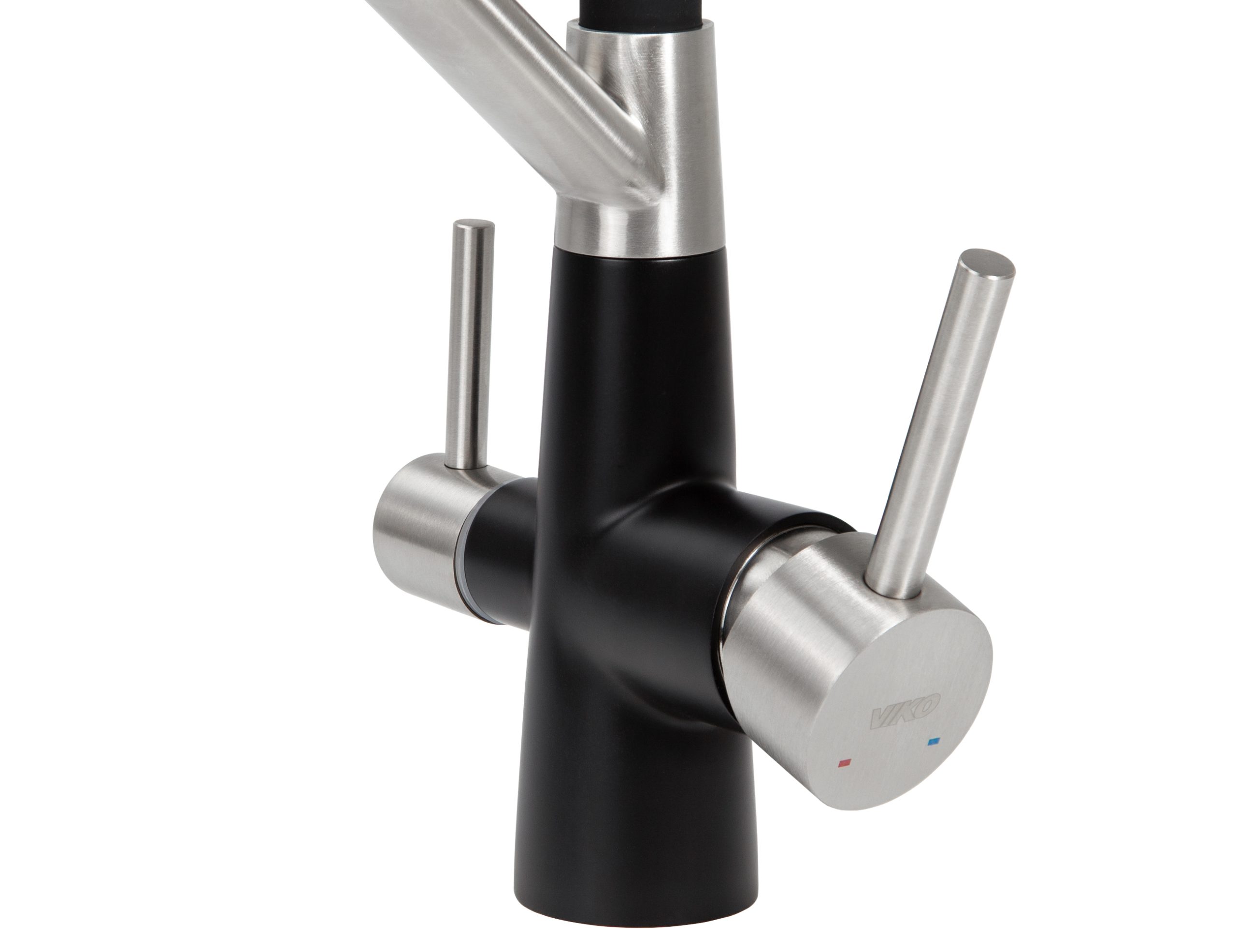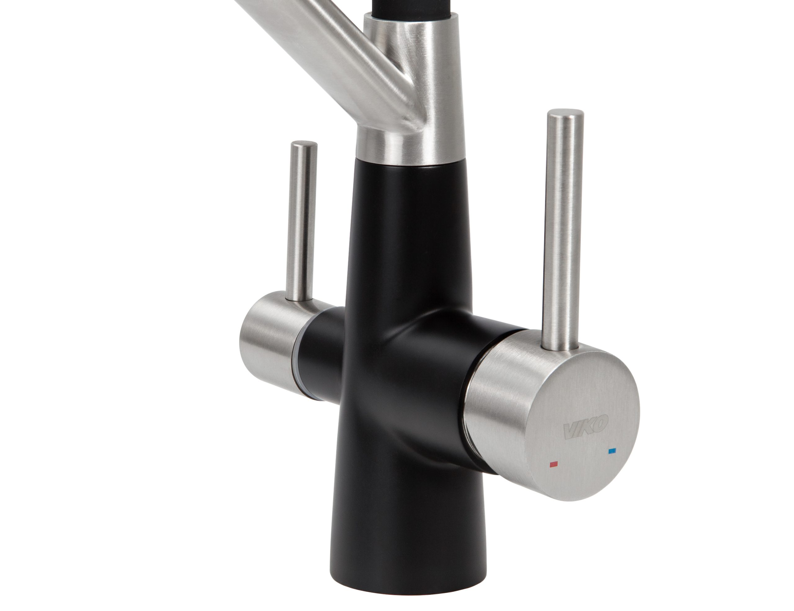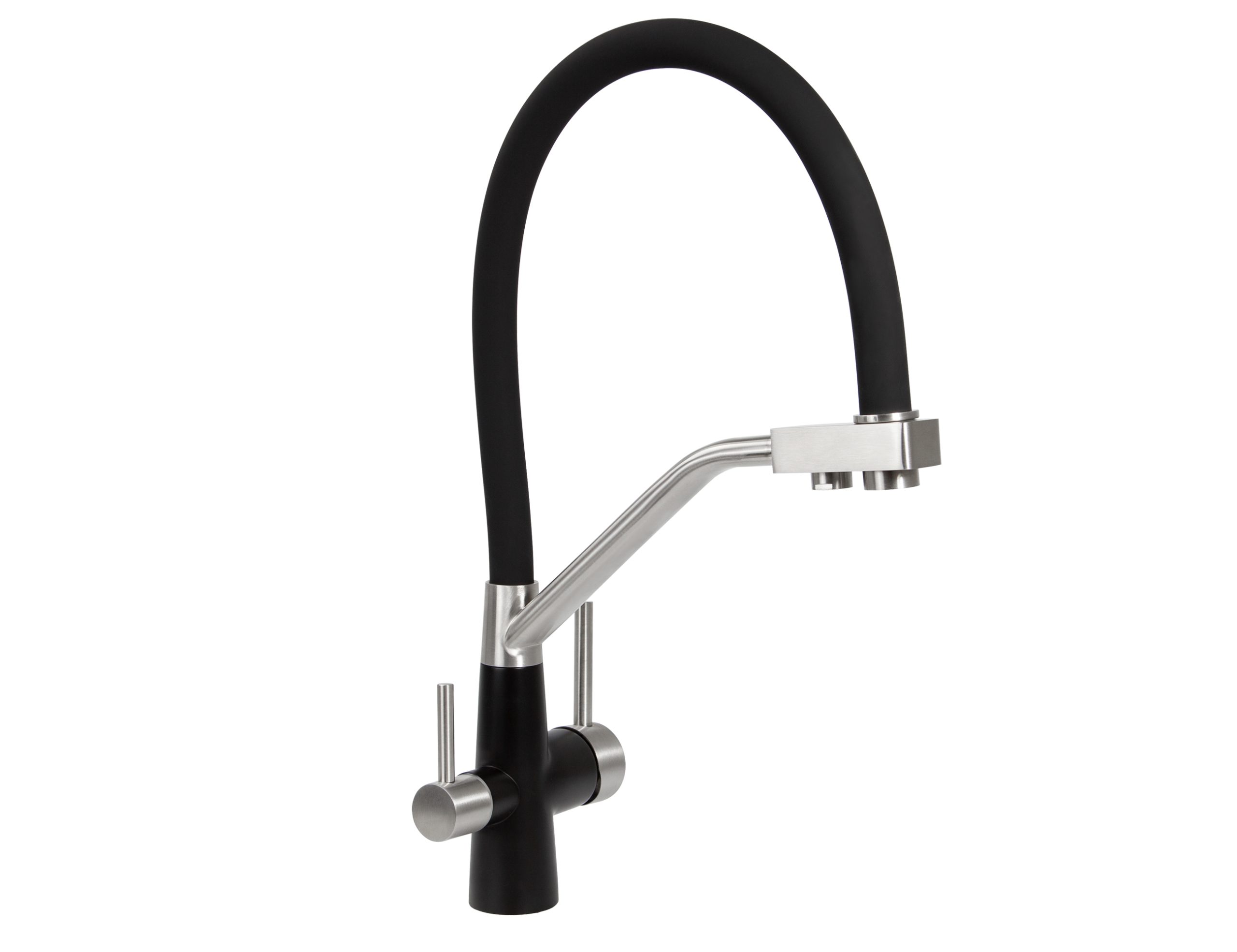 Смеситель VIKO для кухни под фильтр с гибким изливом Ø35, нерж. сталь (корпус/излив: черный матовый, серебро/черный)