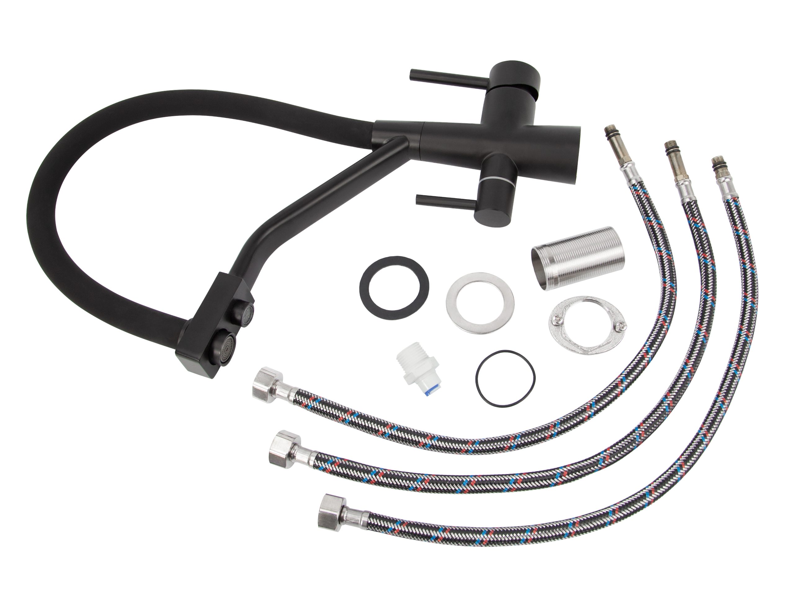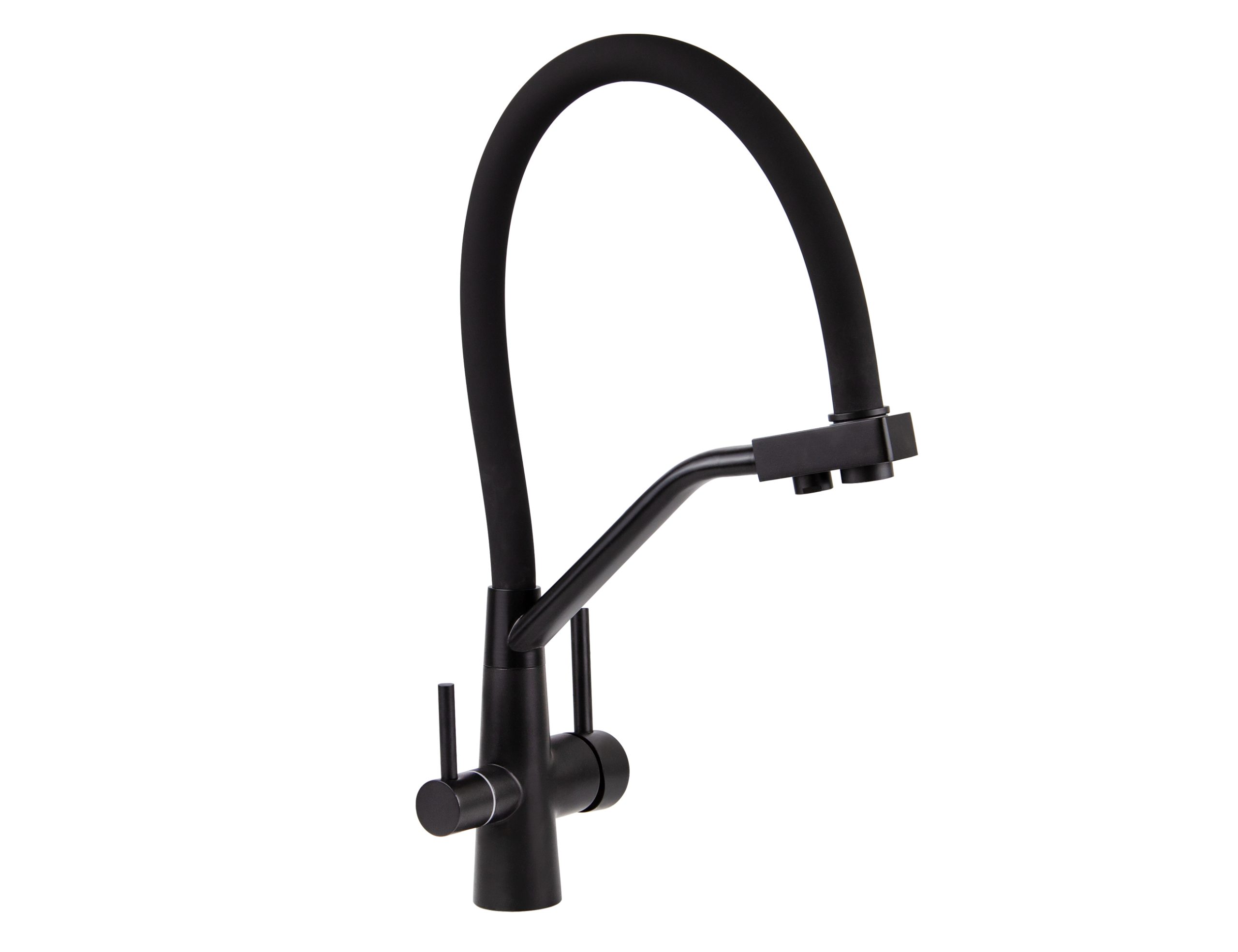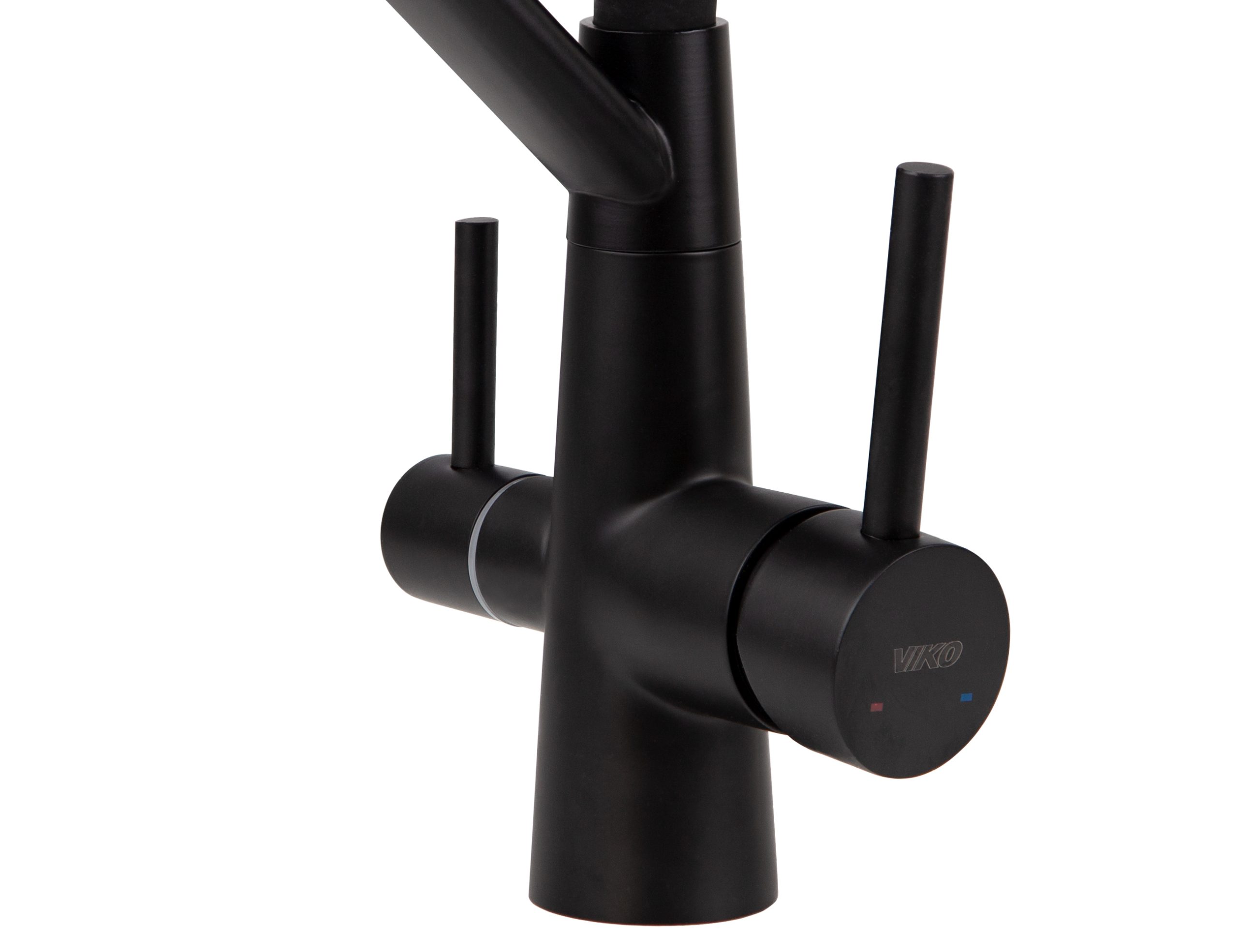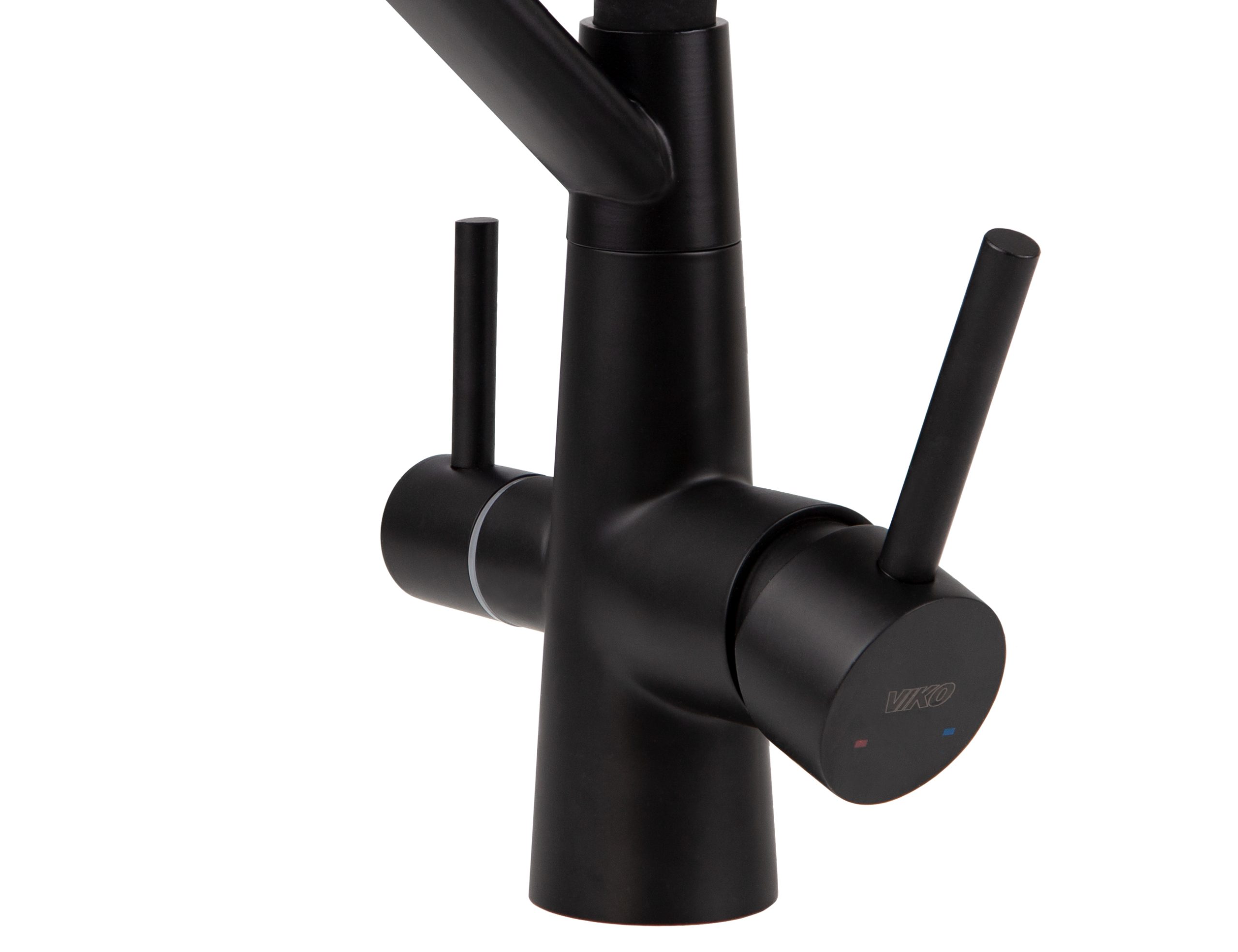 Смеситель VIKO для кухни под фильтр с гибким изливом Ø35, нерж. сталь (корпус/излив: черный матовый)