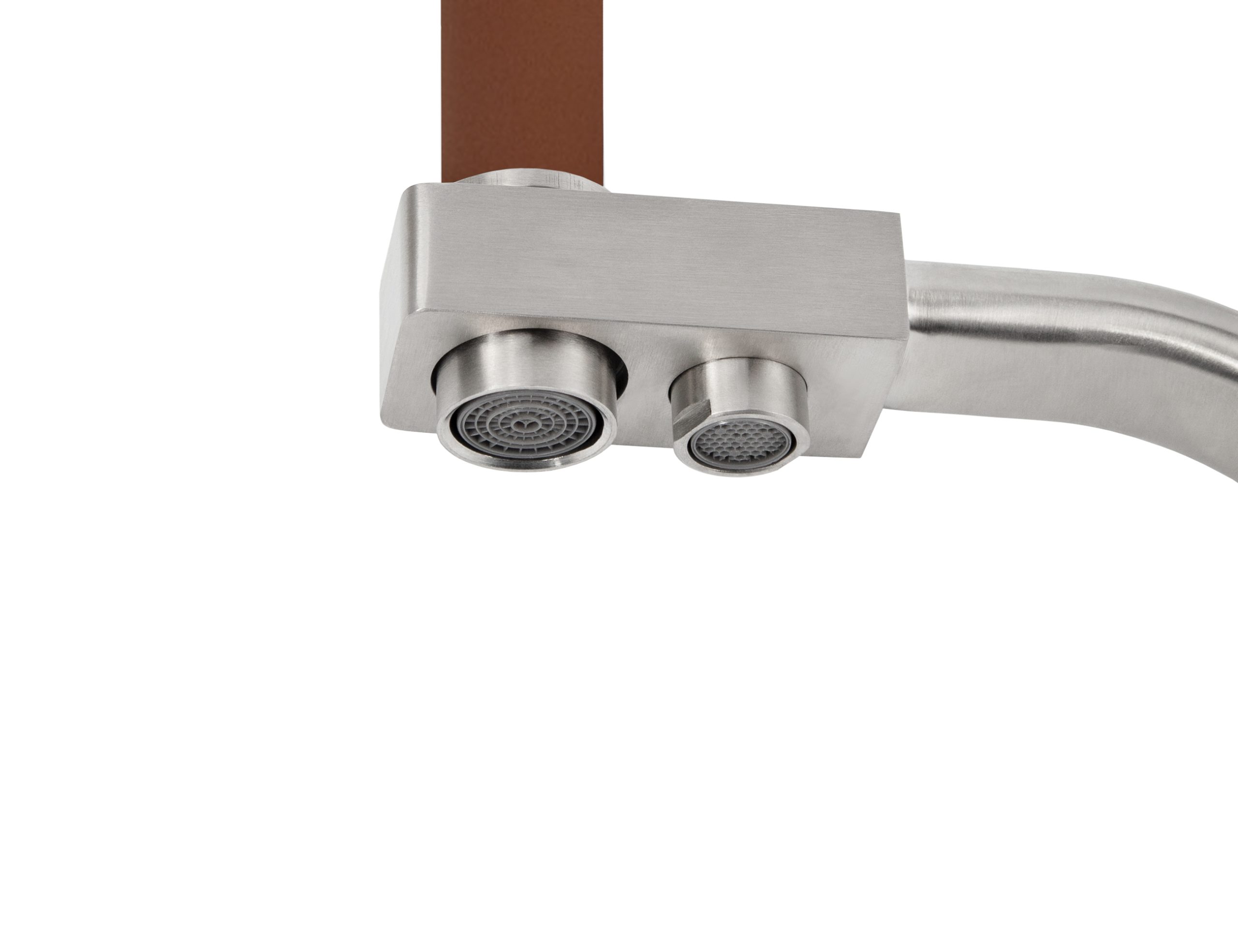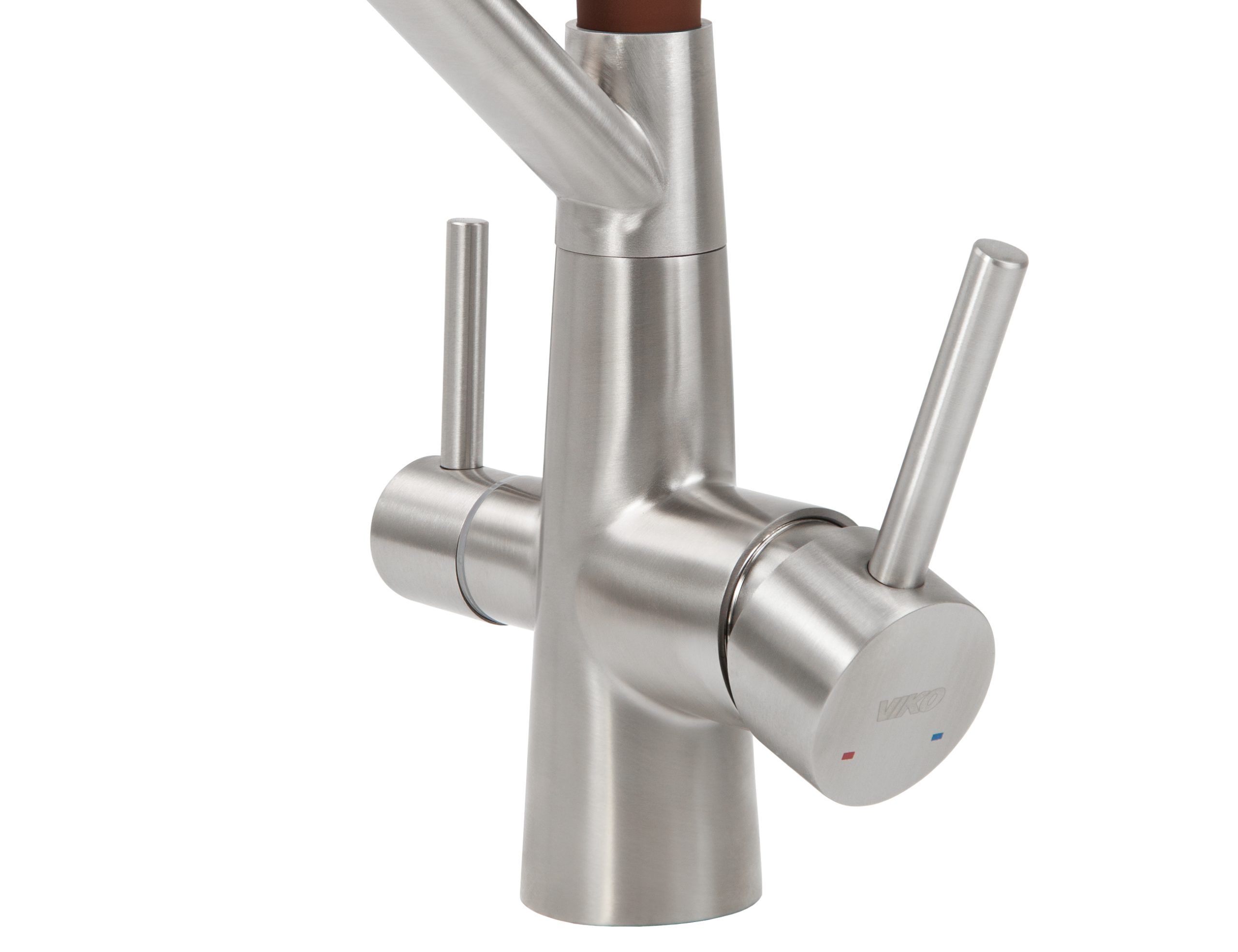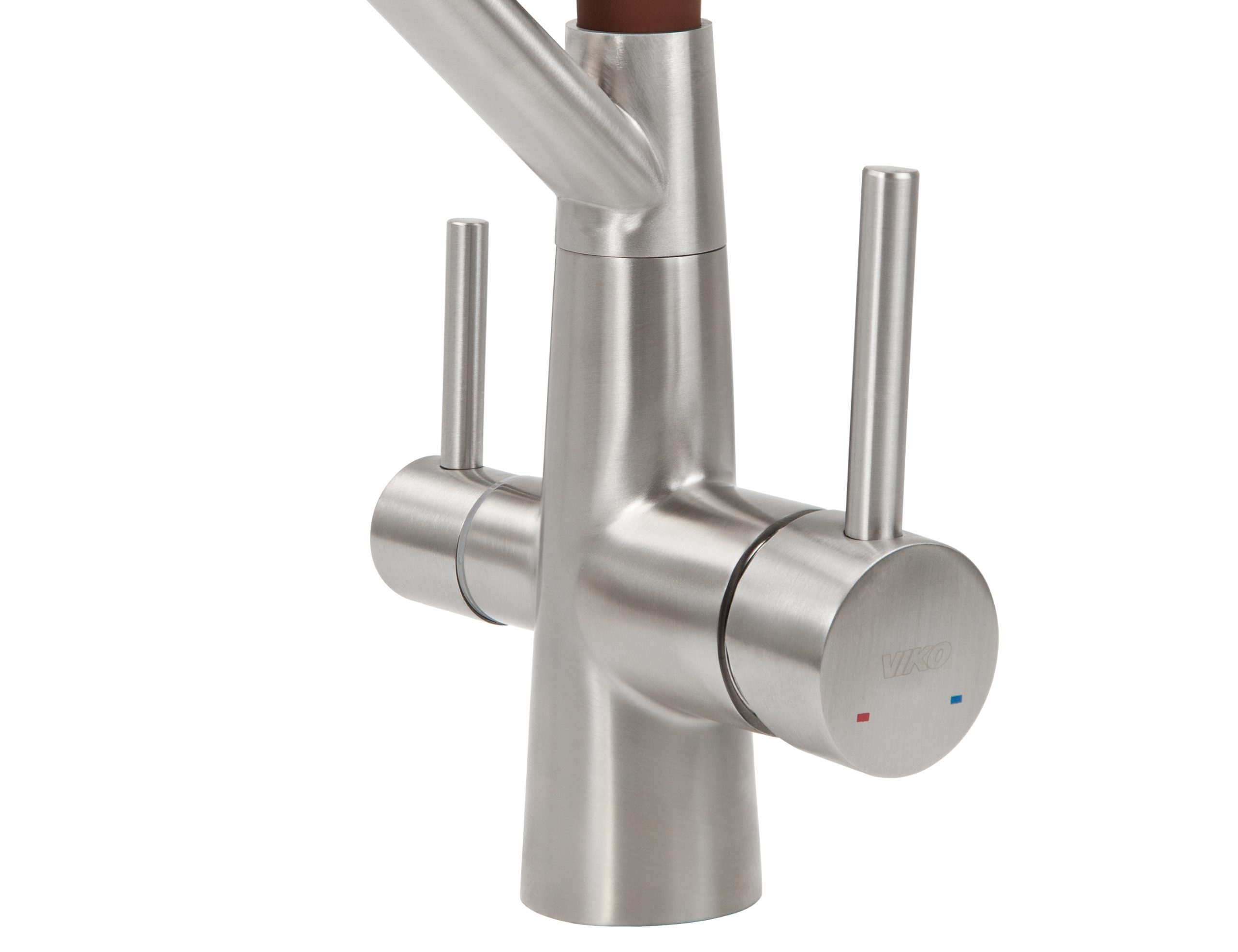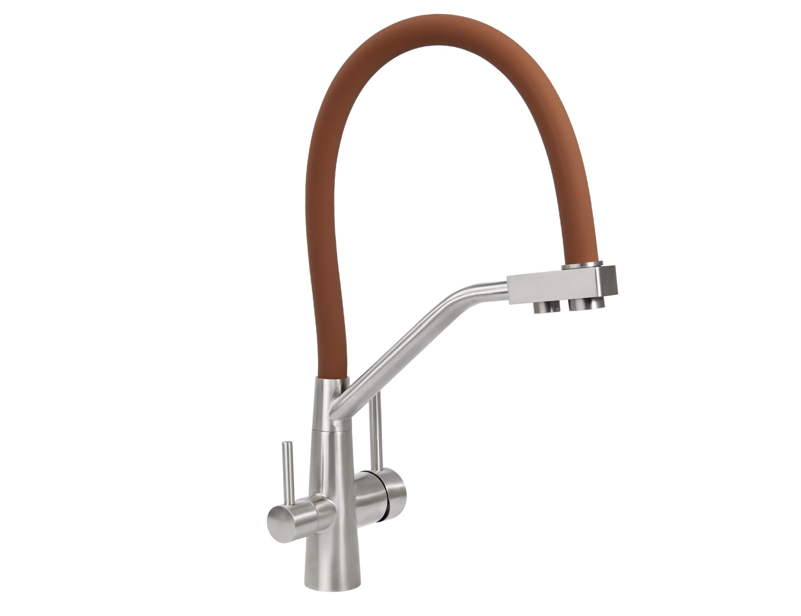 Смеситель VIKO для кухни под фильтр с гибким изливом Ø35, нерж. сталь (корпус/излив: серебро/коричневый)