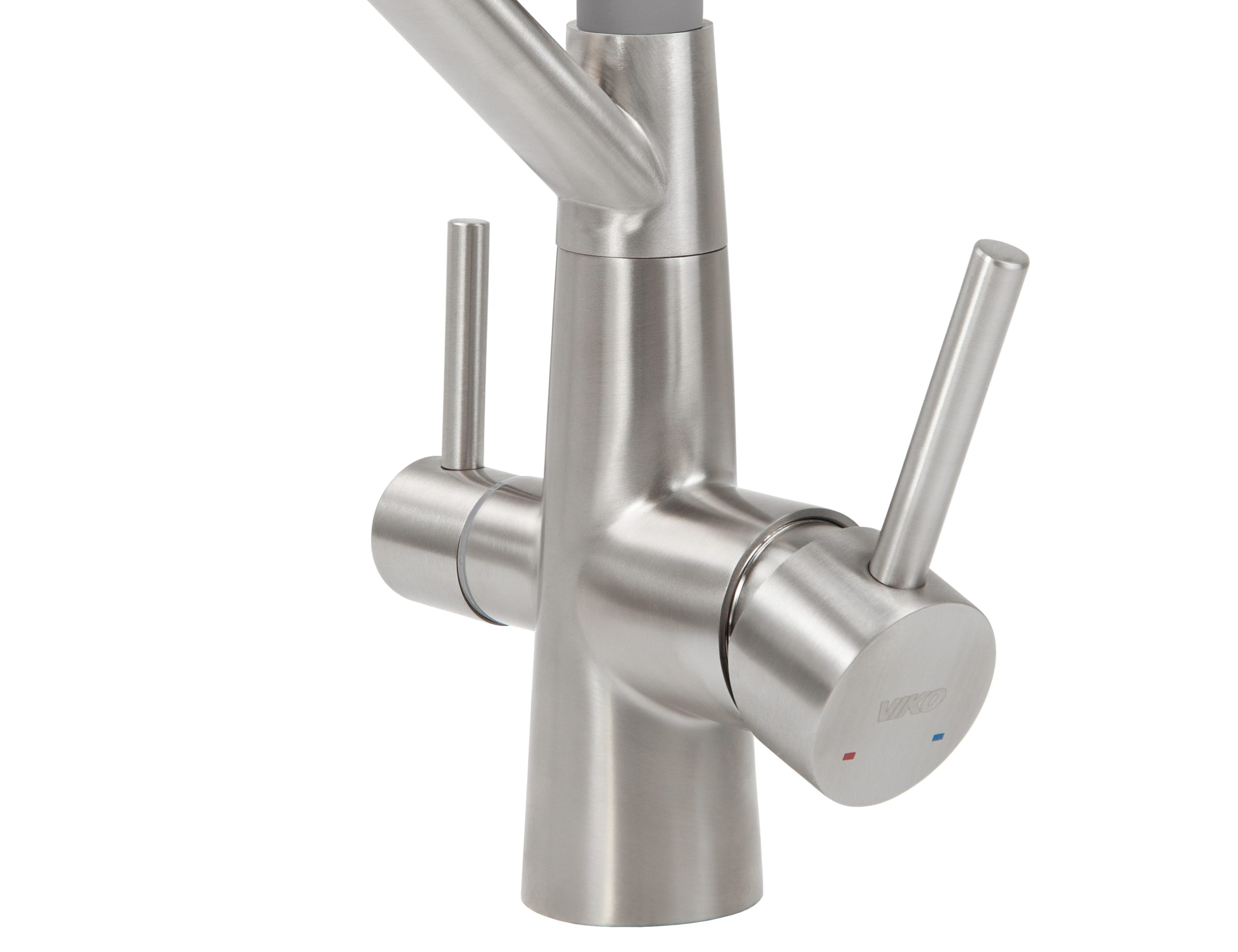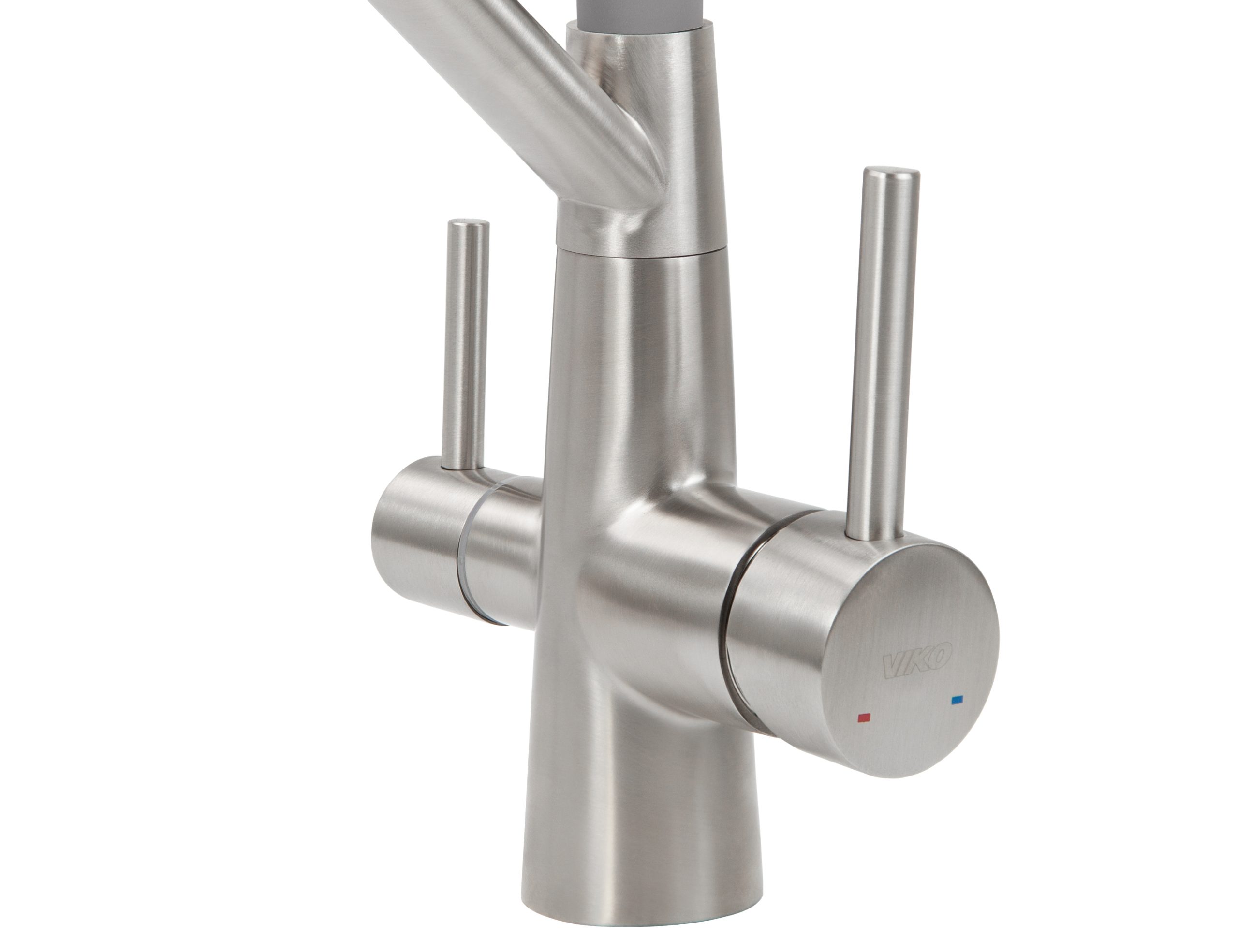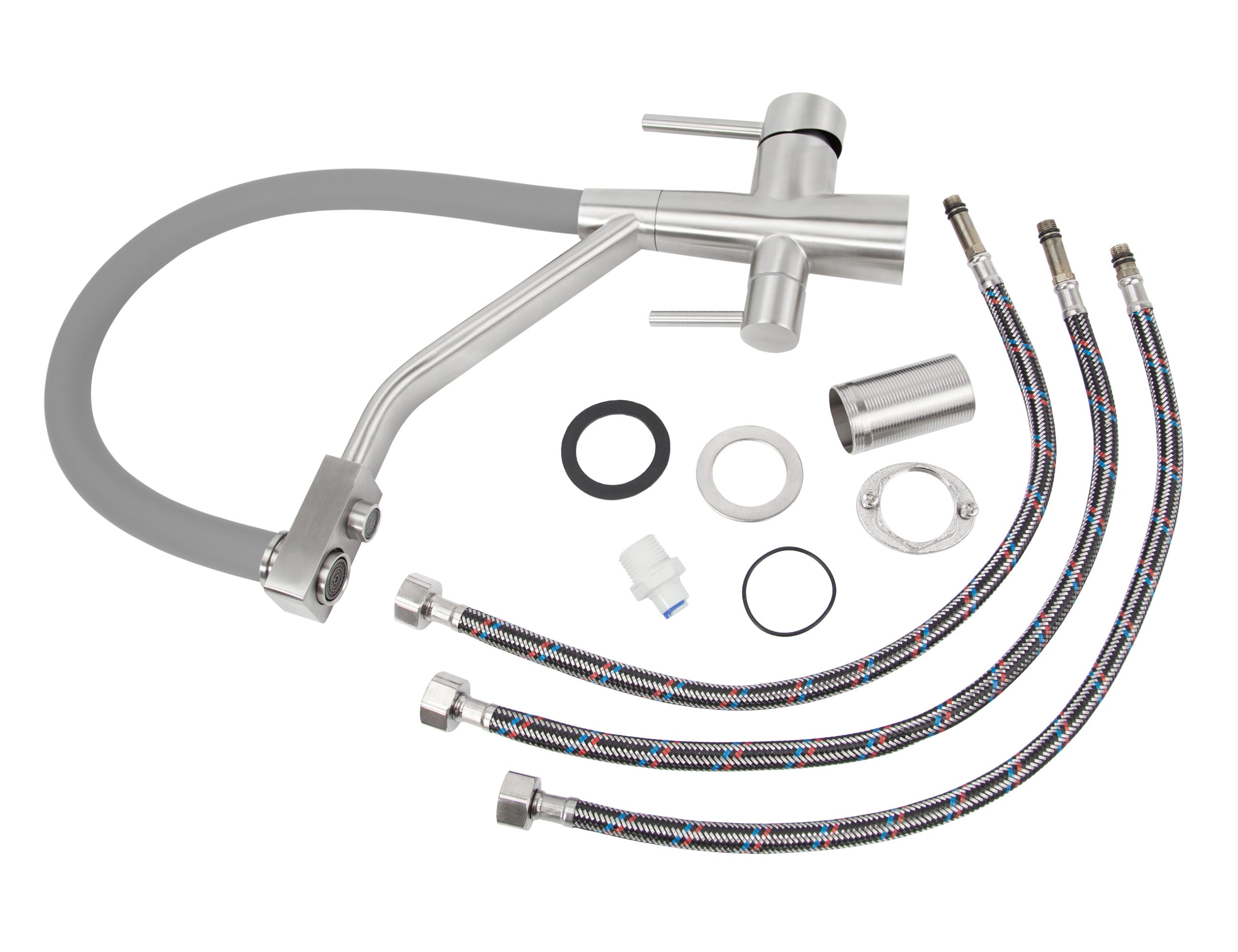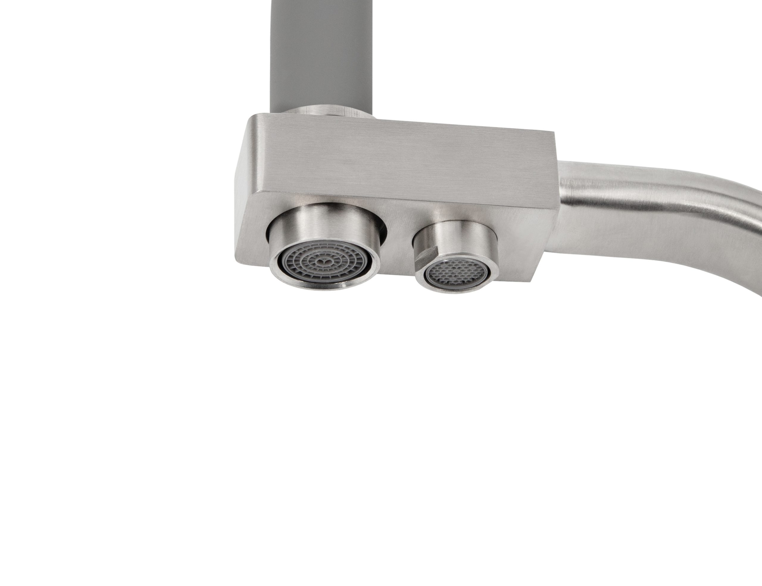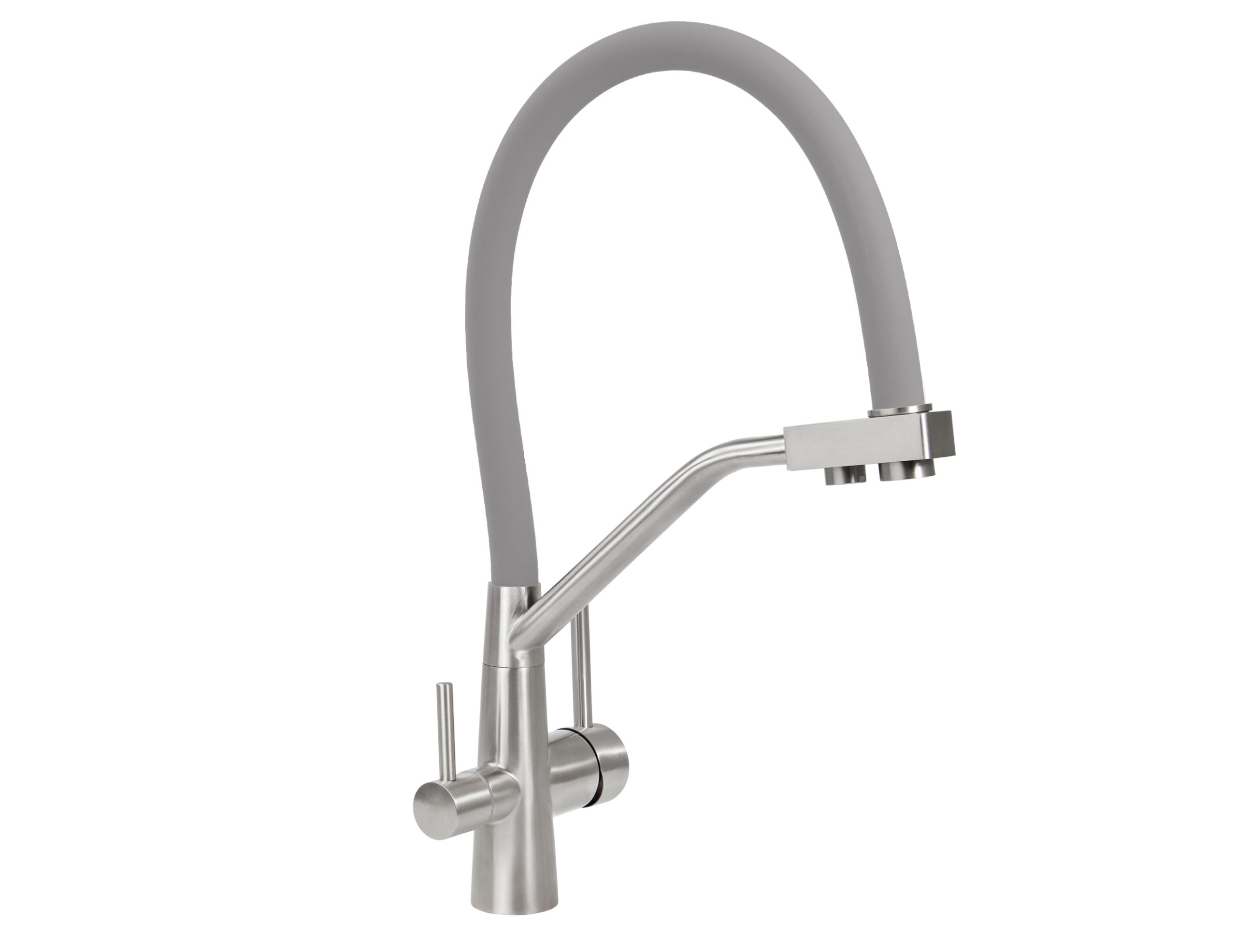 Смеситель VIKO для кухни под фильтр с гибким изливом Ø35, нерж. сталь (корпус/излив: серебро/серый)