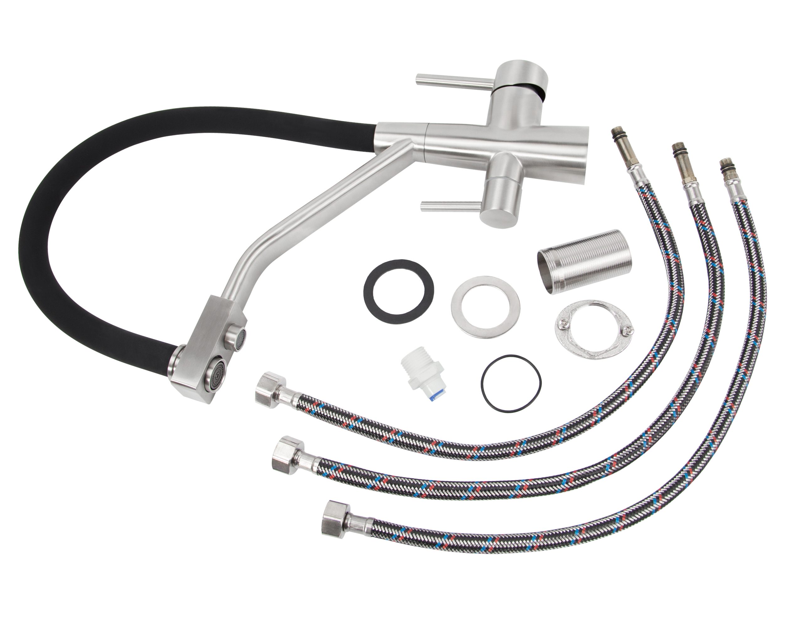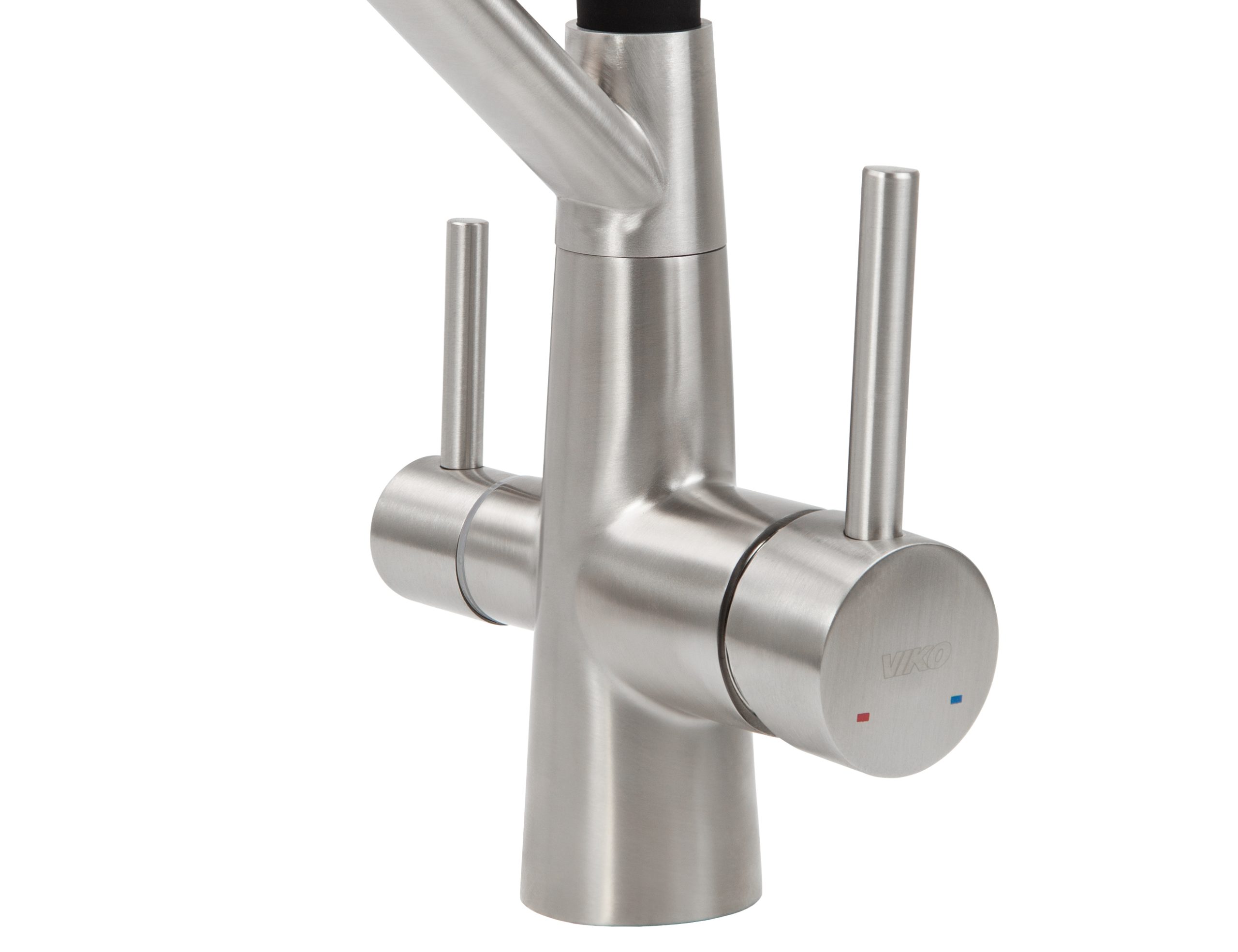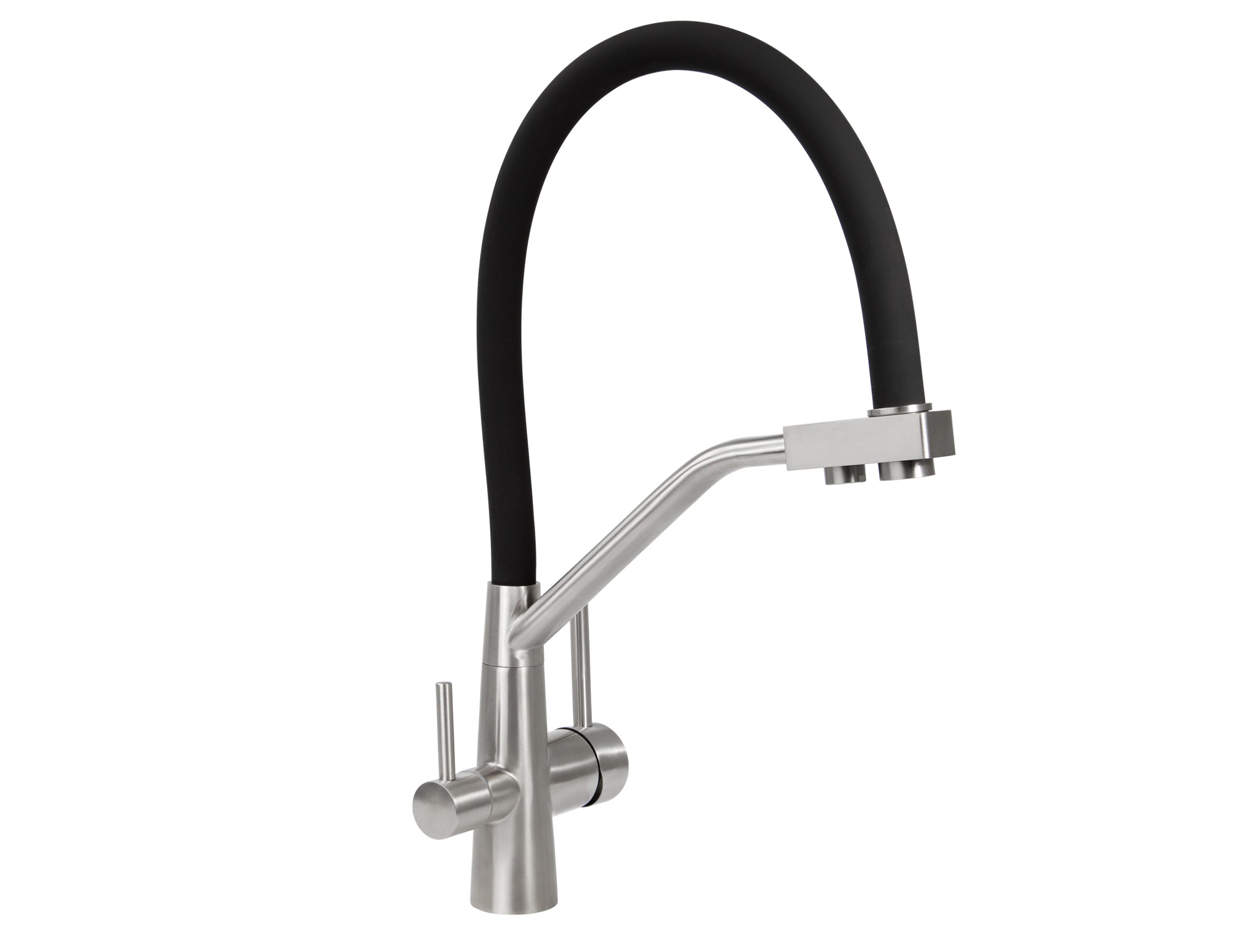 Смеситель VIKO для кухни под фильтр с гибким изливом Ø35,нерж. сталь (корпус/излив: серебро/черный)
