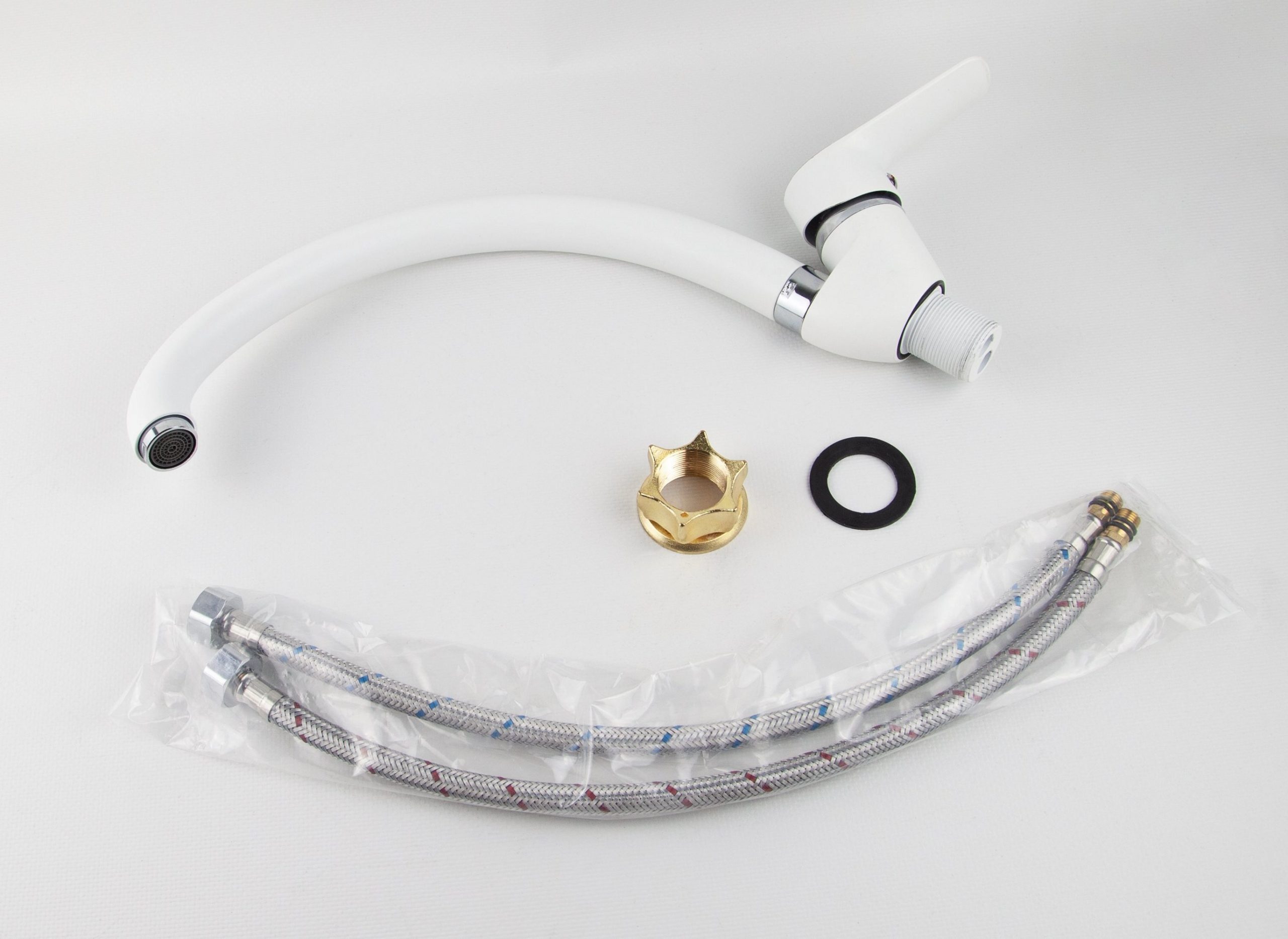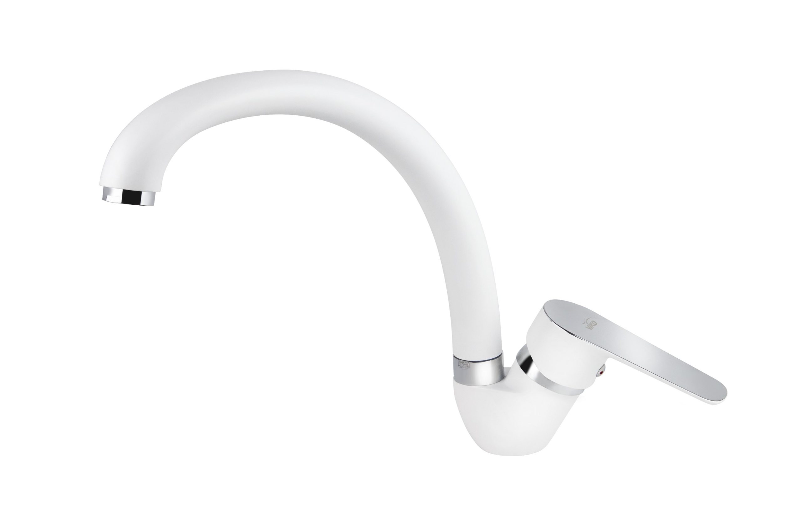 Смеситель VIKO кухня боковой Ø35 с гайкой, хром+белый/глянец
