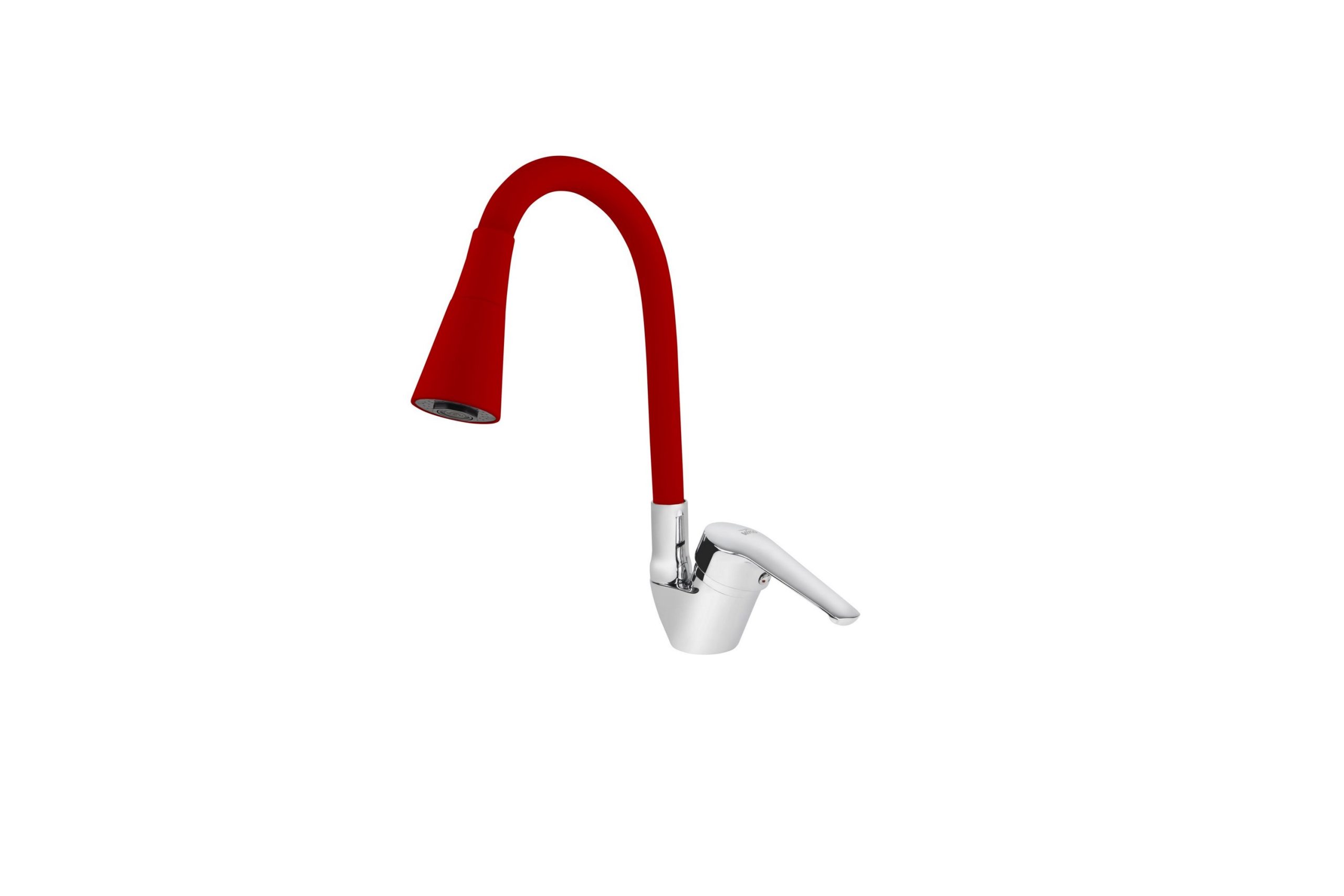 Смеситель VIKO кухня боковой Ø40 с гайкой красным гибким изливом (2-jet)