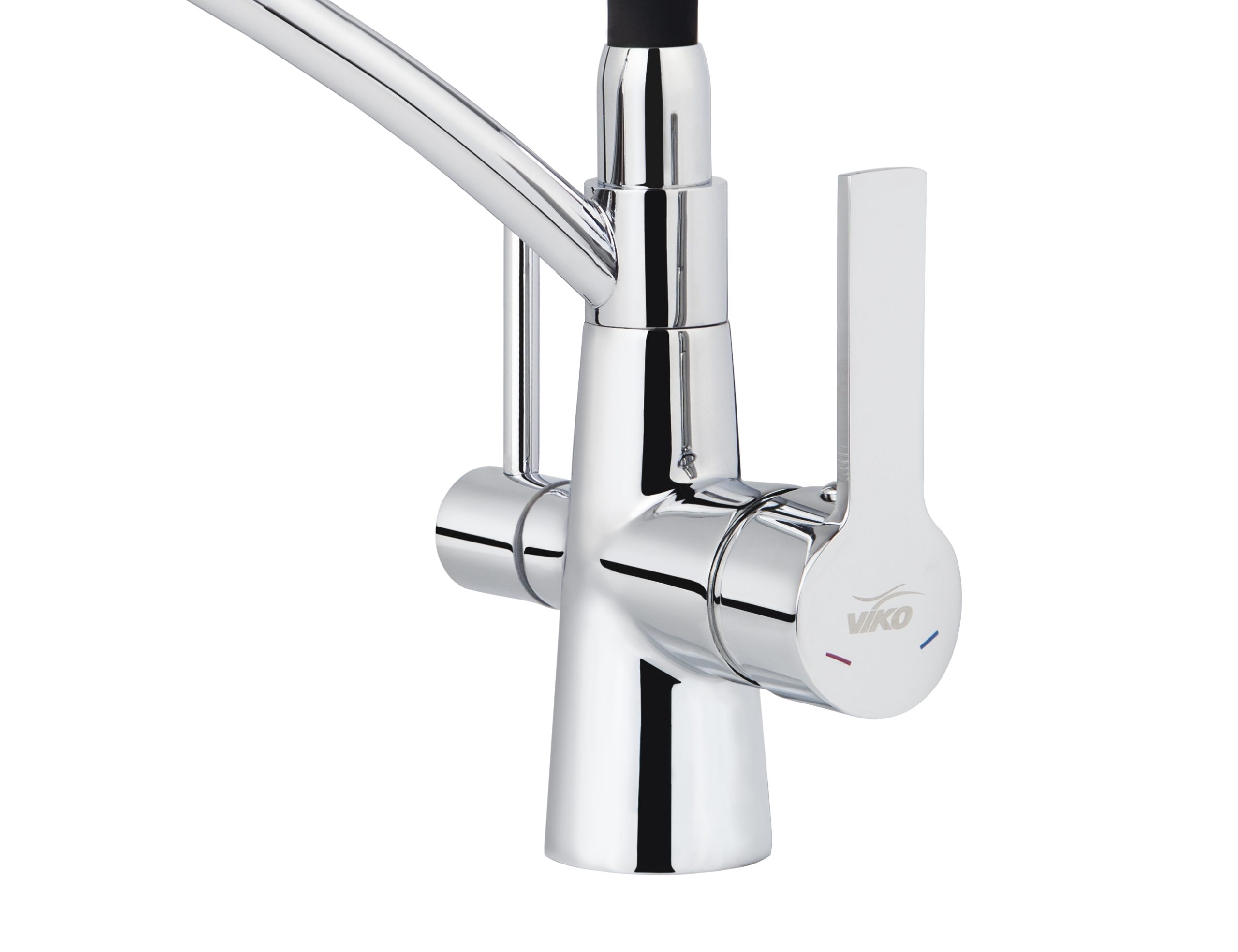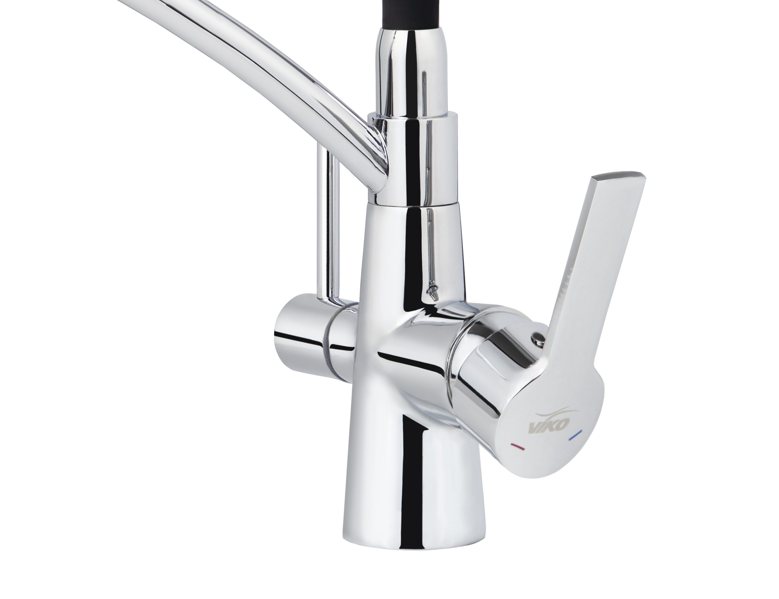 Смеситель VIKO кухня боковой под фильтр Ø35 (латунь) с черным гибким изливом, корпус: хром