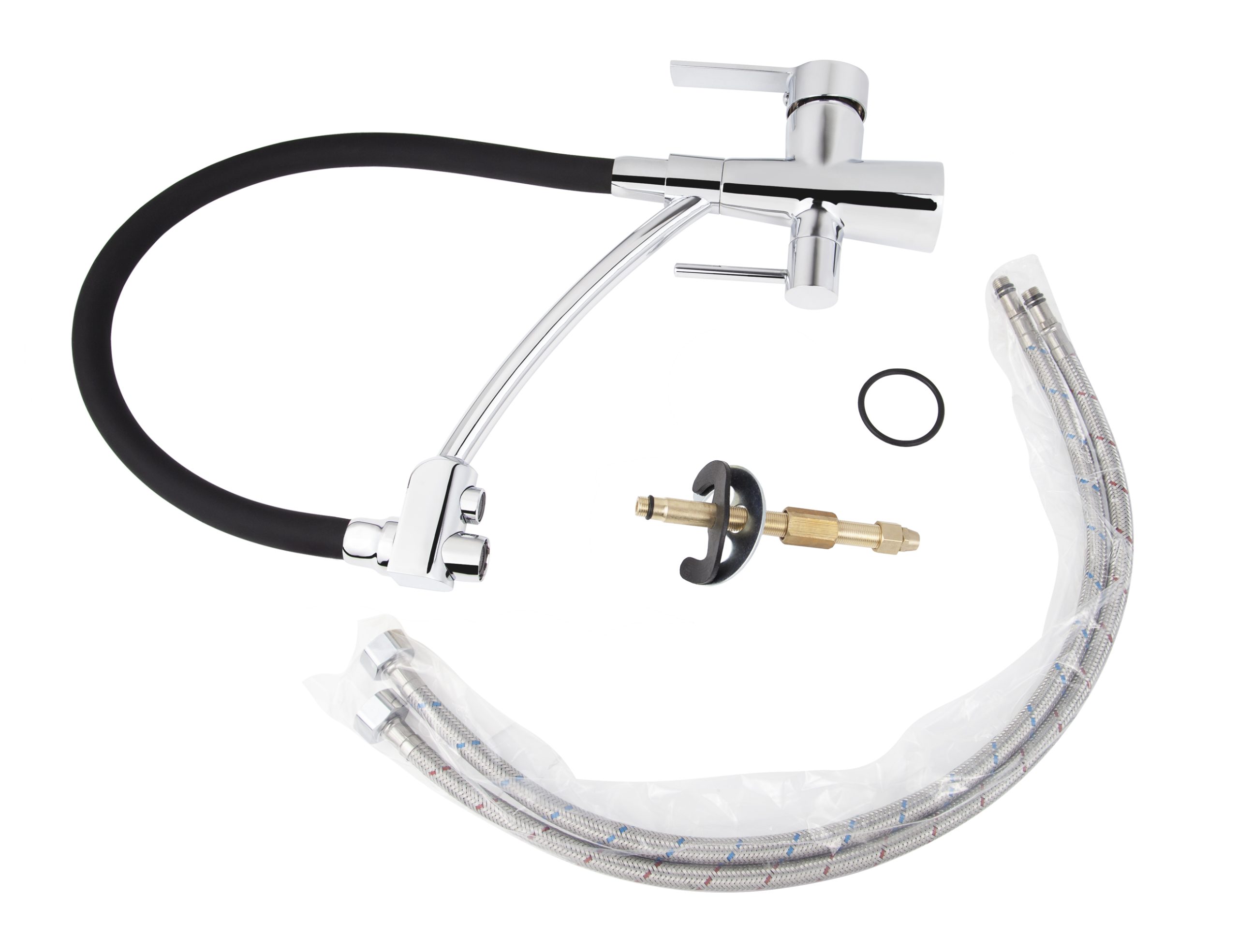5522 VIKO кухня боковой под фильтр Ø35 (латунь) с черным гибким изливом Chrome