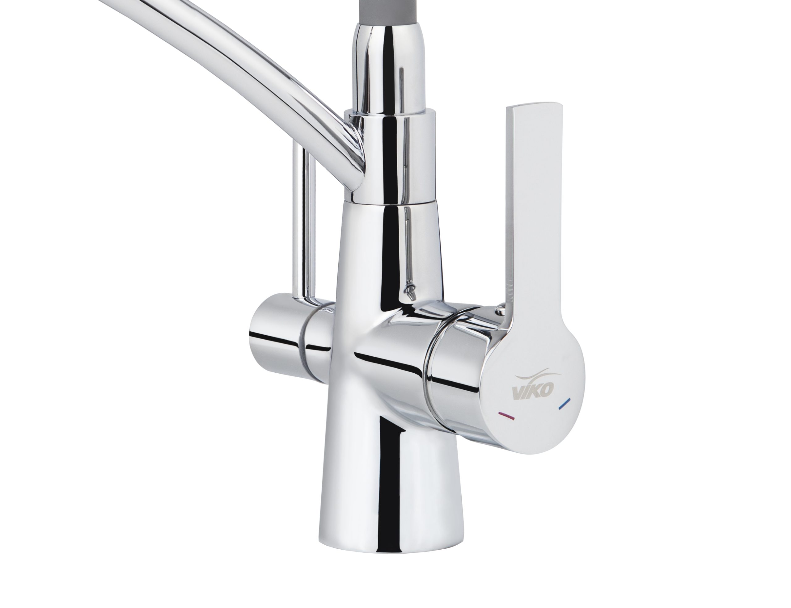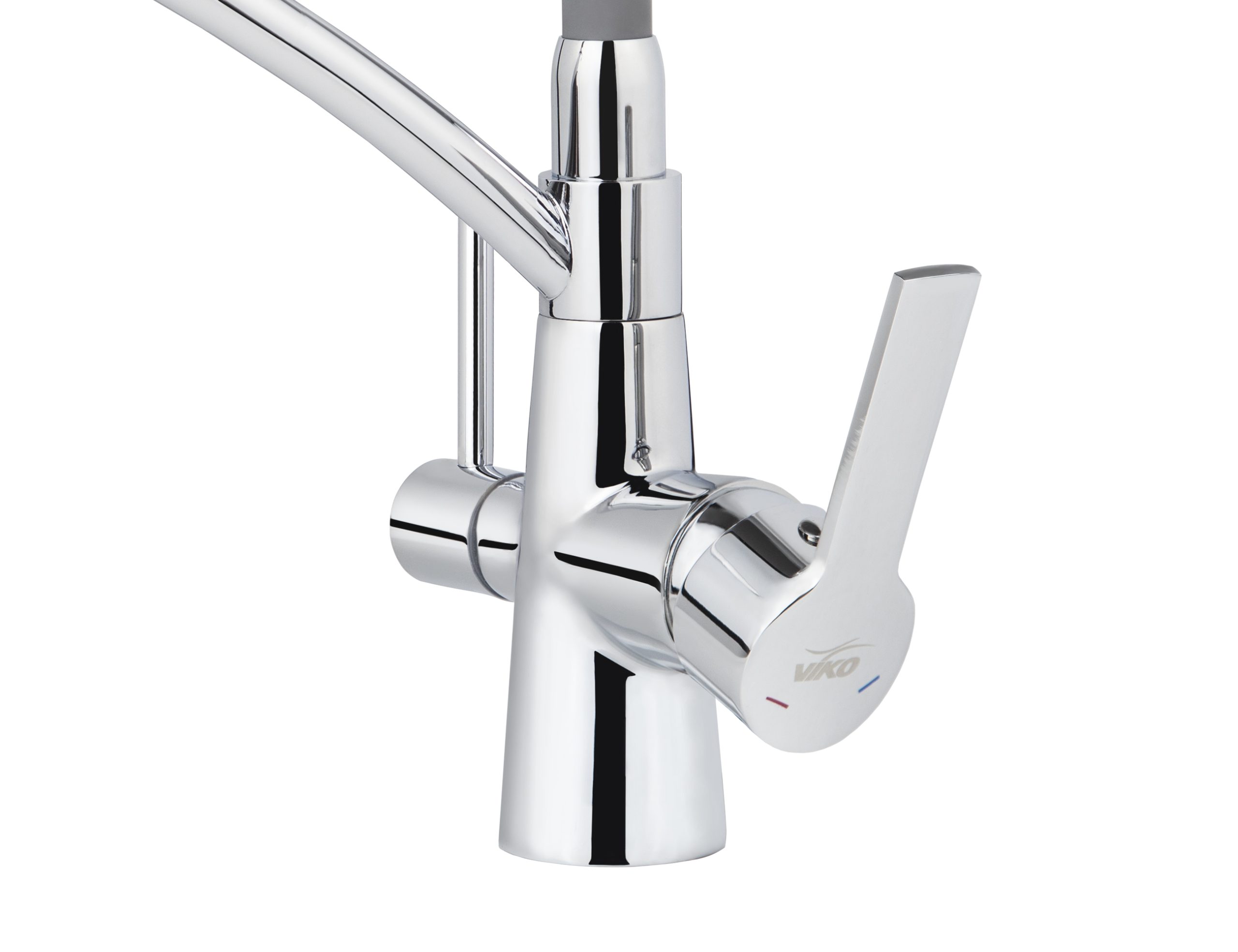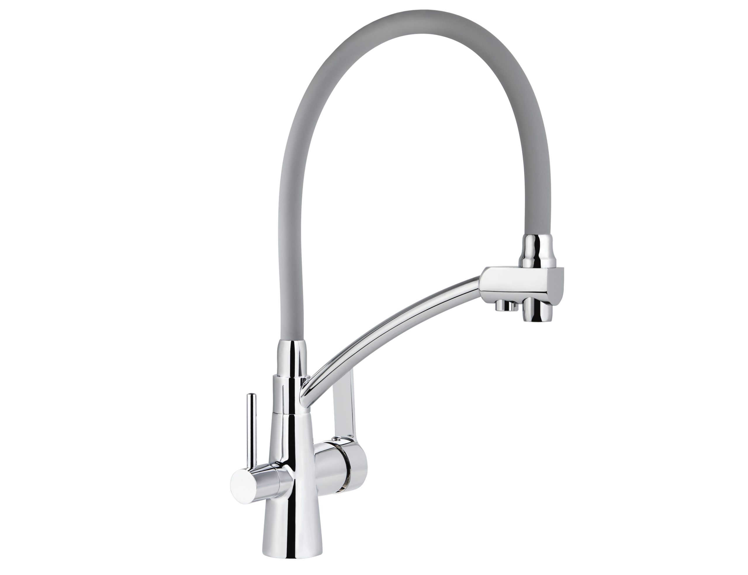 Смеситель VIKO кухня боковой под фильтр Ø35 (латунь) с гибким серым изливом, корпус: хром