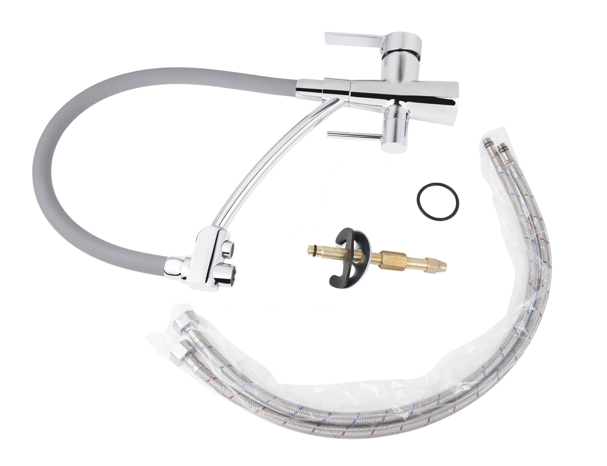 5524 VIKO кухня боковой под фильтр Ø35 (латунь) с серым гибким изливом Chrome