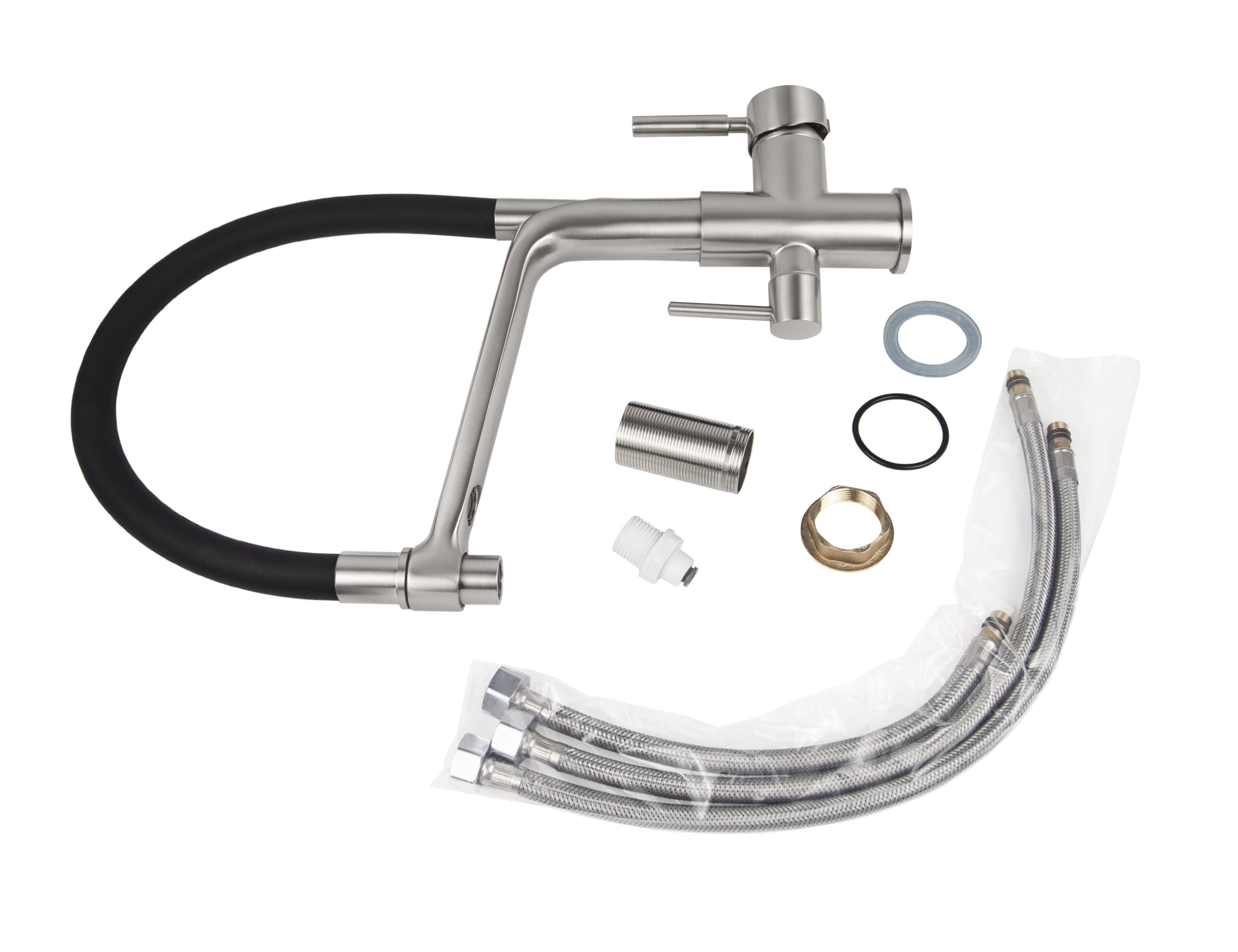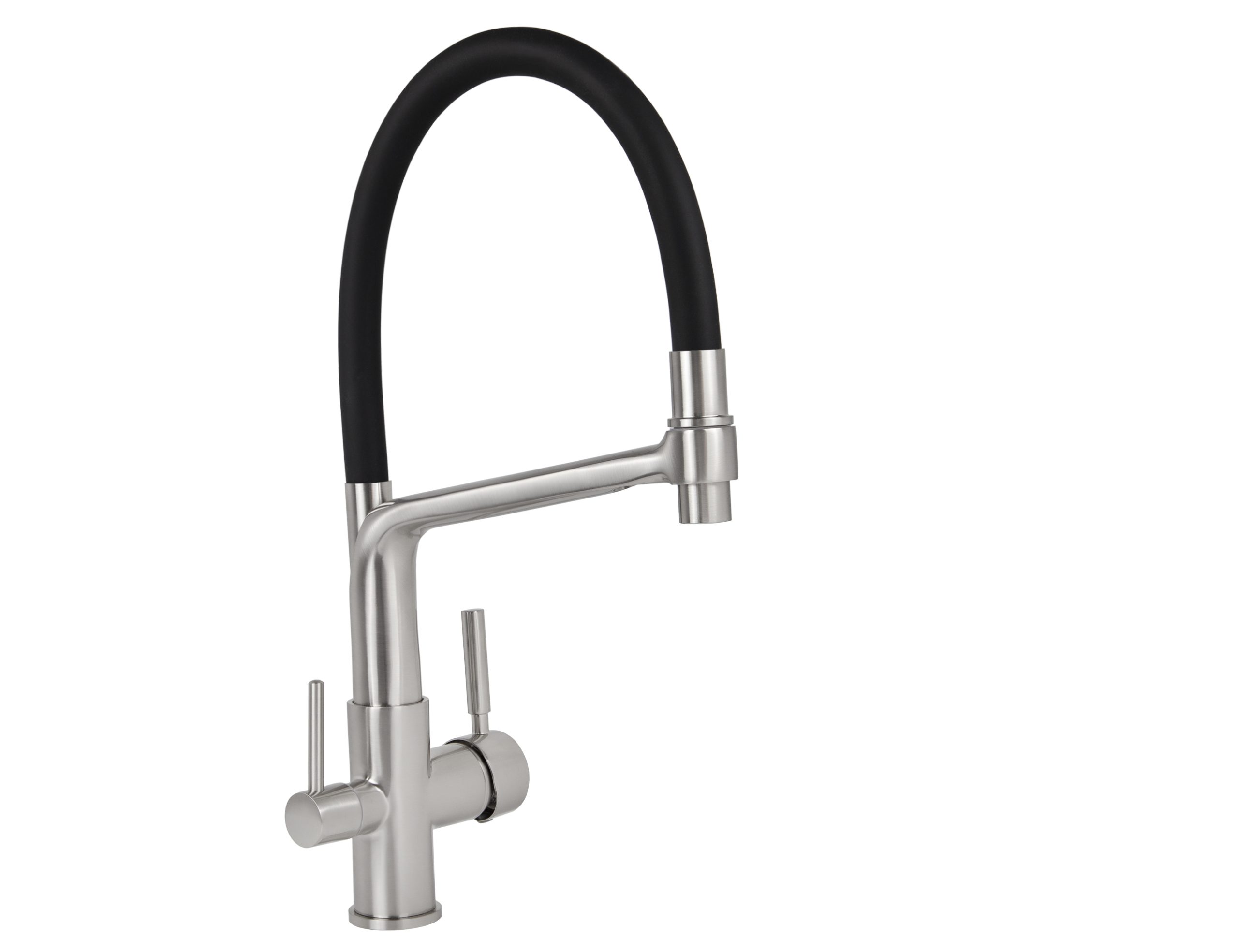 5605 VIKO кухня боковой под фильтр Ø35 (латунь) с черным гибким изливом Silver