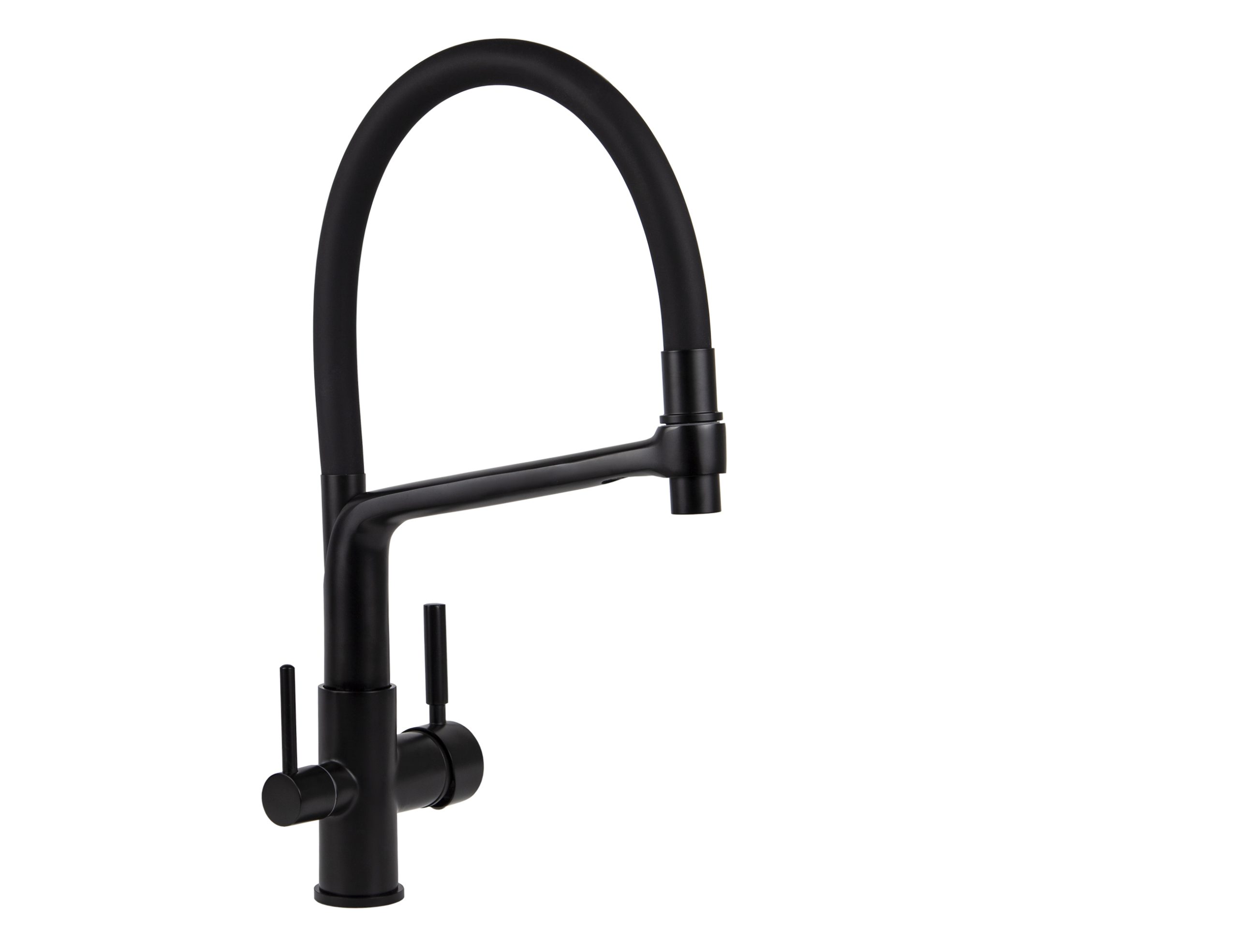 Смеситель VIKO кухня боковой под фильтр Ø35 с черным гибким изливом, латунь, корпус: черный матовый (латунь)