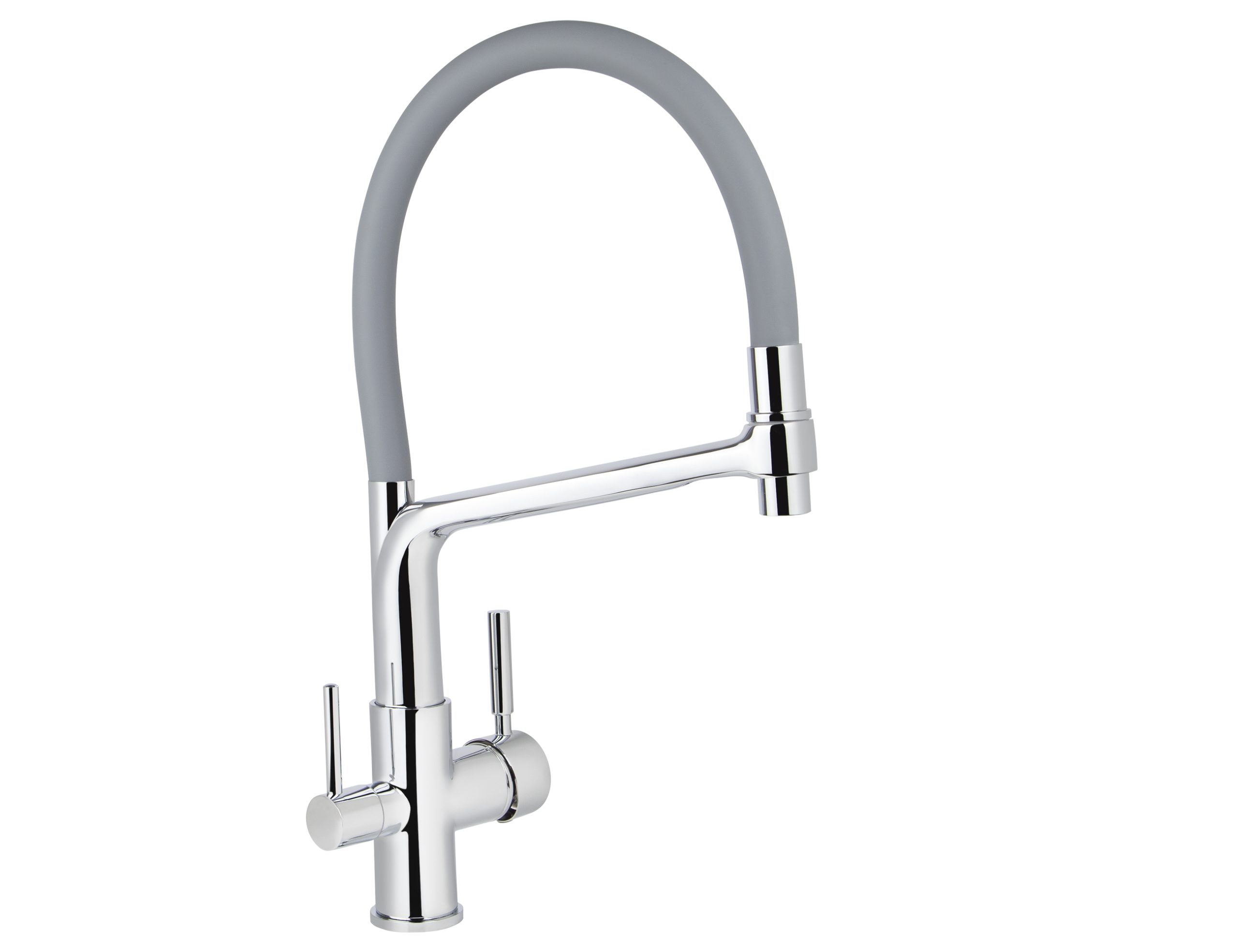 Смеситель VIKO кухня боковой под фильтр Ø35 с гибким серым изливом, корпус: хром (латунь)