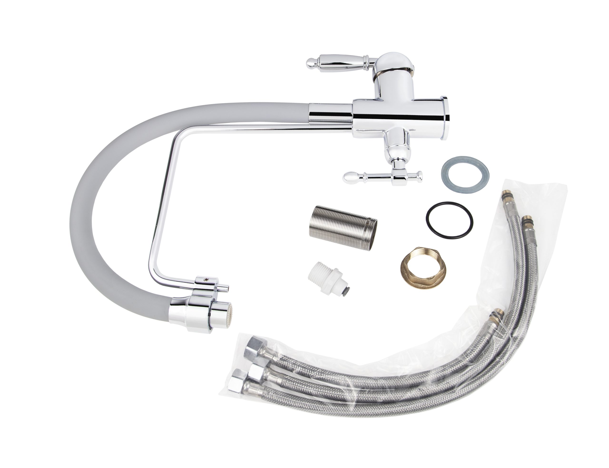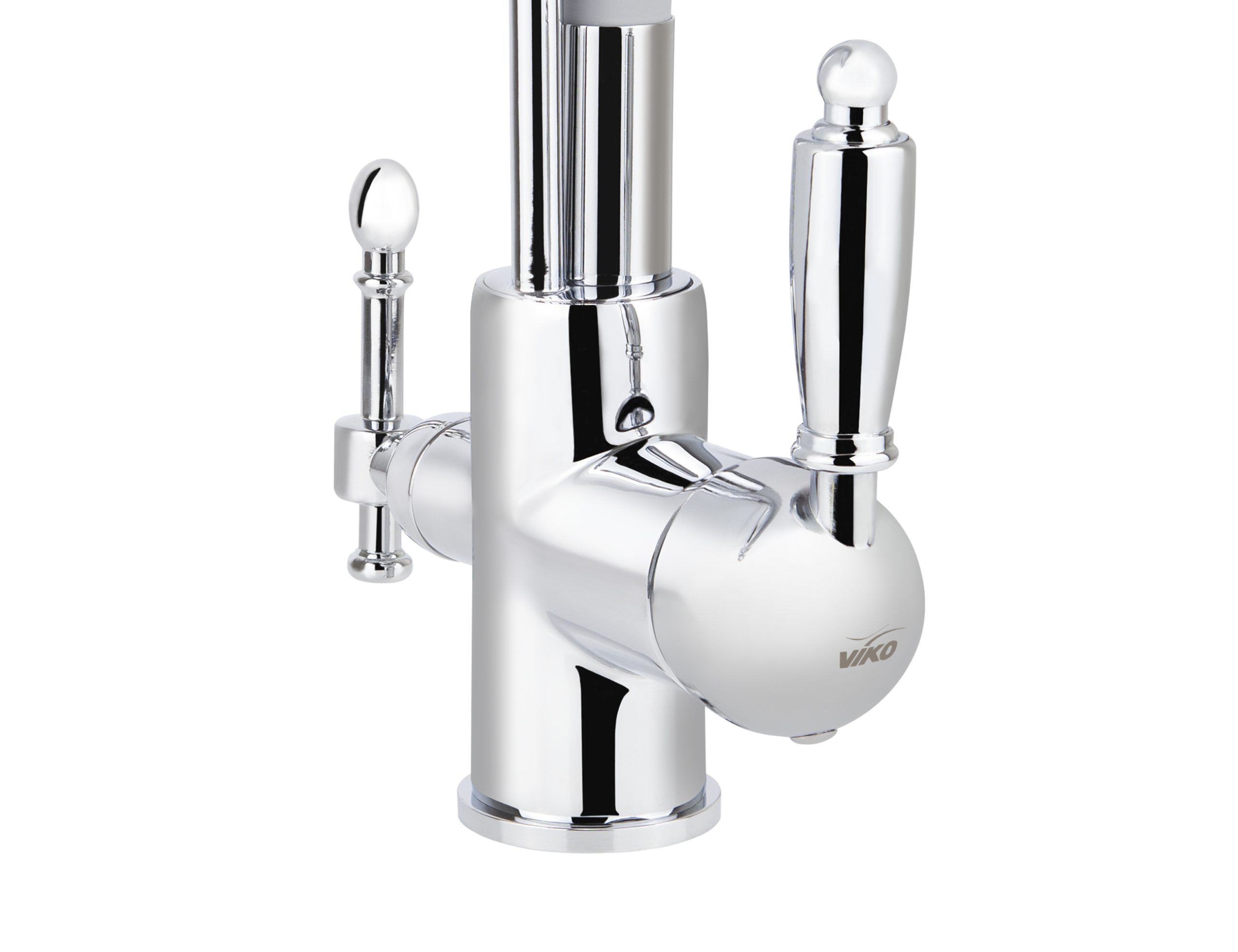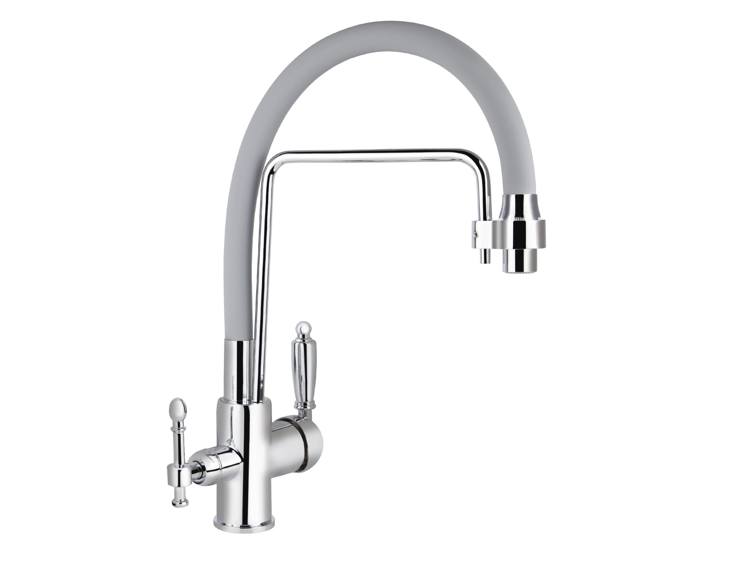 Смеситель VIKO кухня боковой под фильтр Ø35 с гибким серым изливом, латунь, серебро