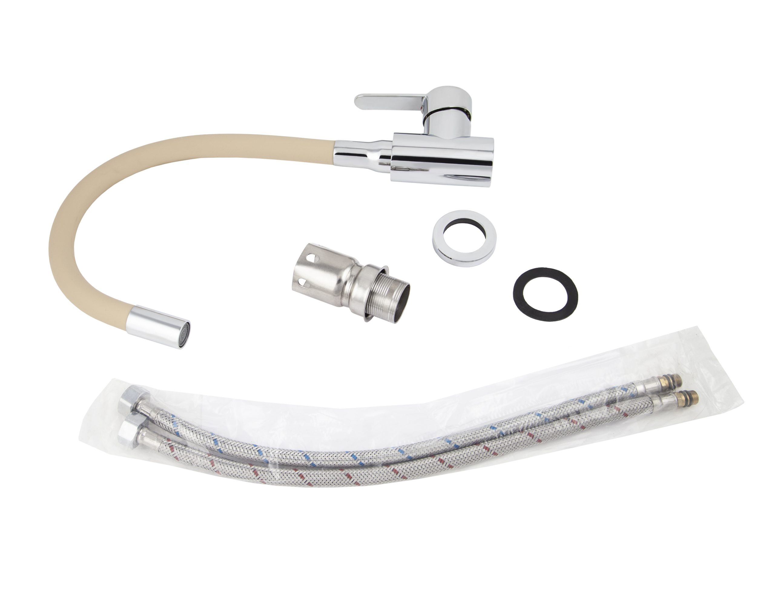 Смеситель VIKO кухня боковой с бежевым гибким изливом Ø35, нерж. сталь с гайкой, корпус: хром
