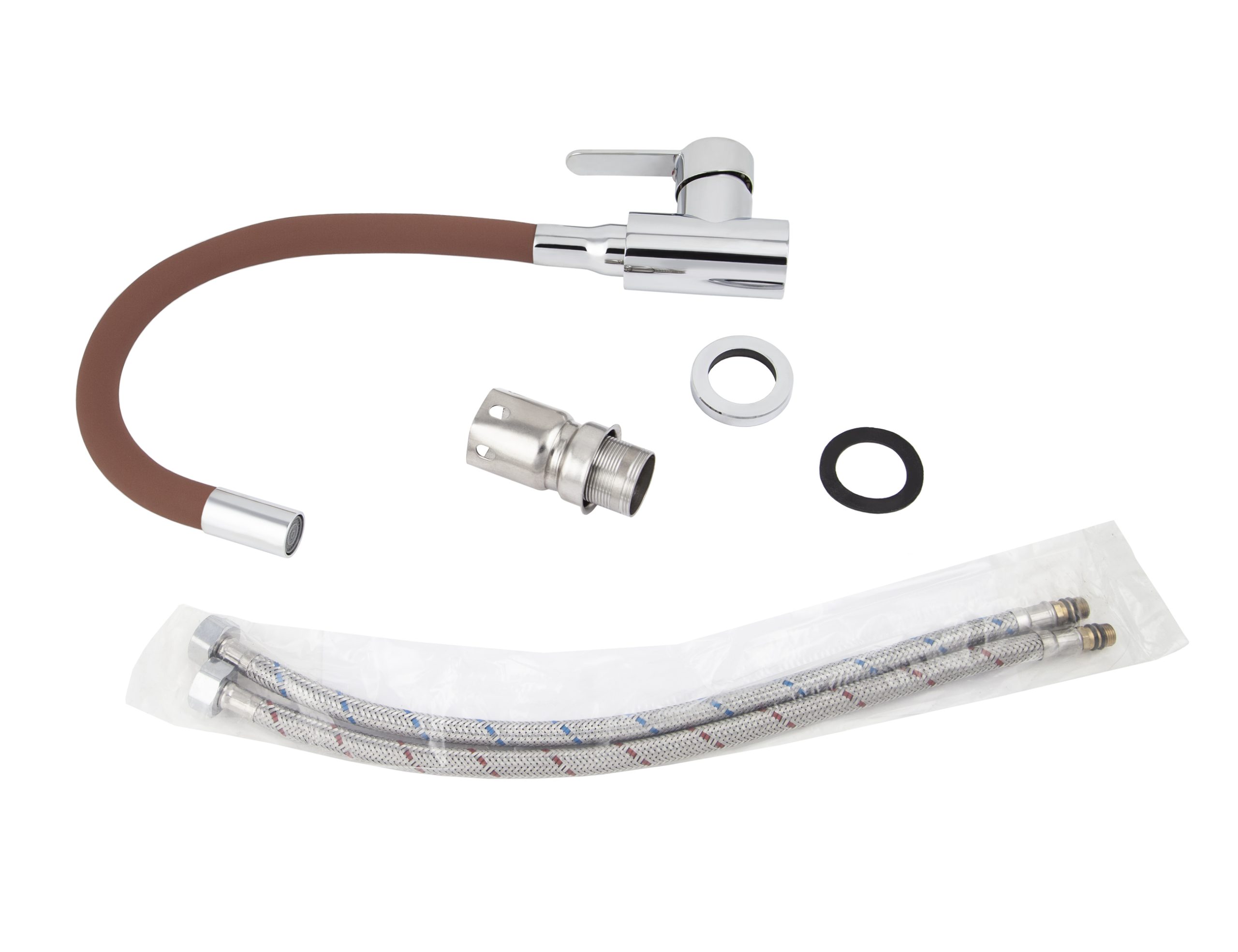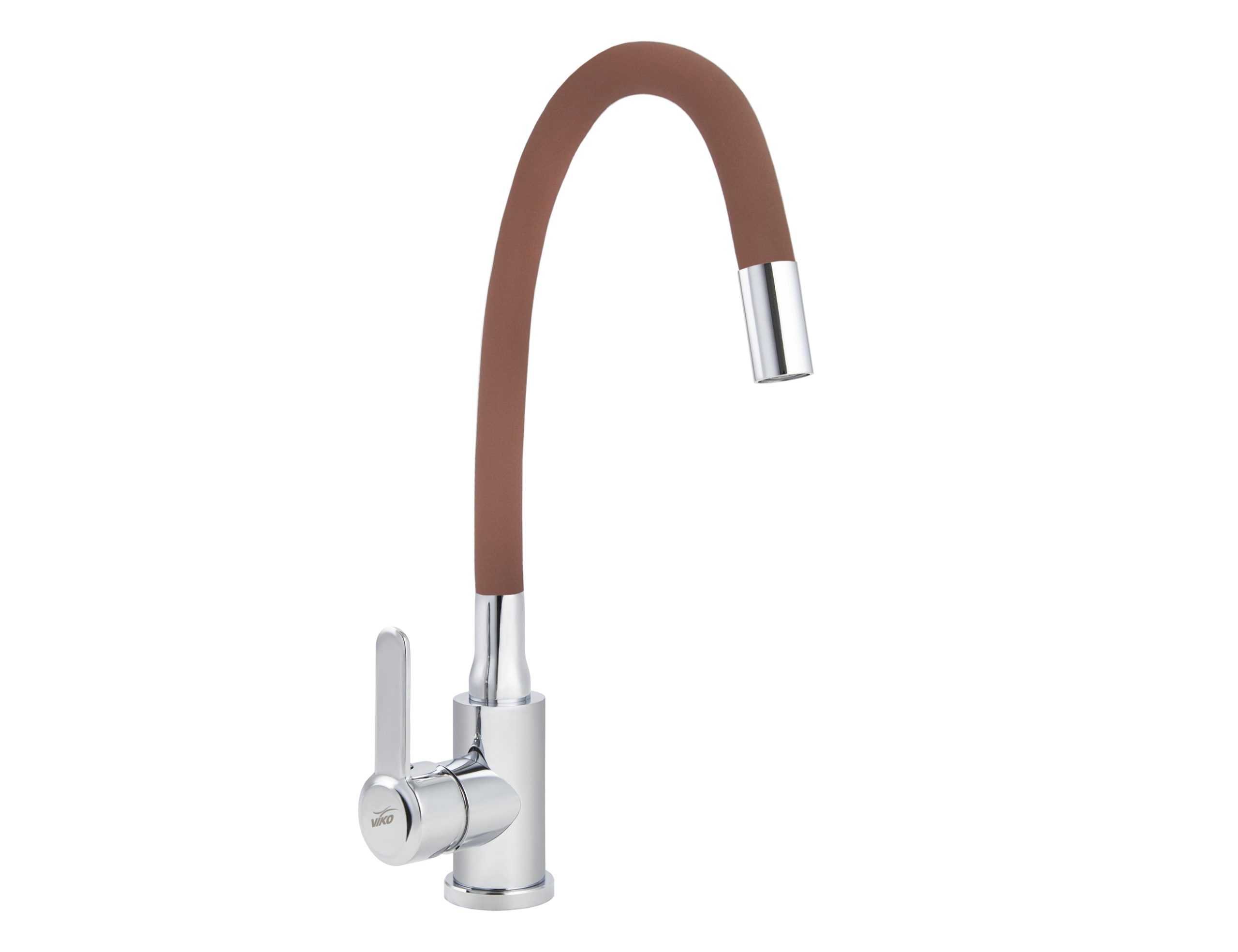 Смеситель VIKO кухня боковой с коричневым гибким изливом Ø40, нерж. сталь, с гайкой, корпус: хром