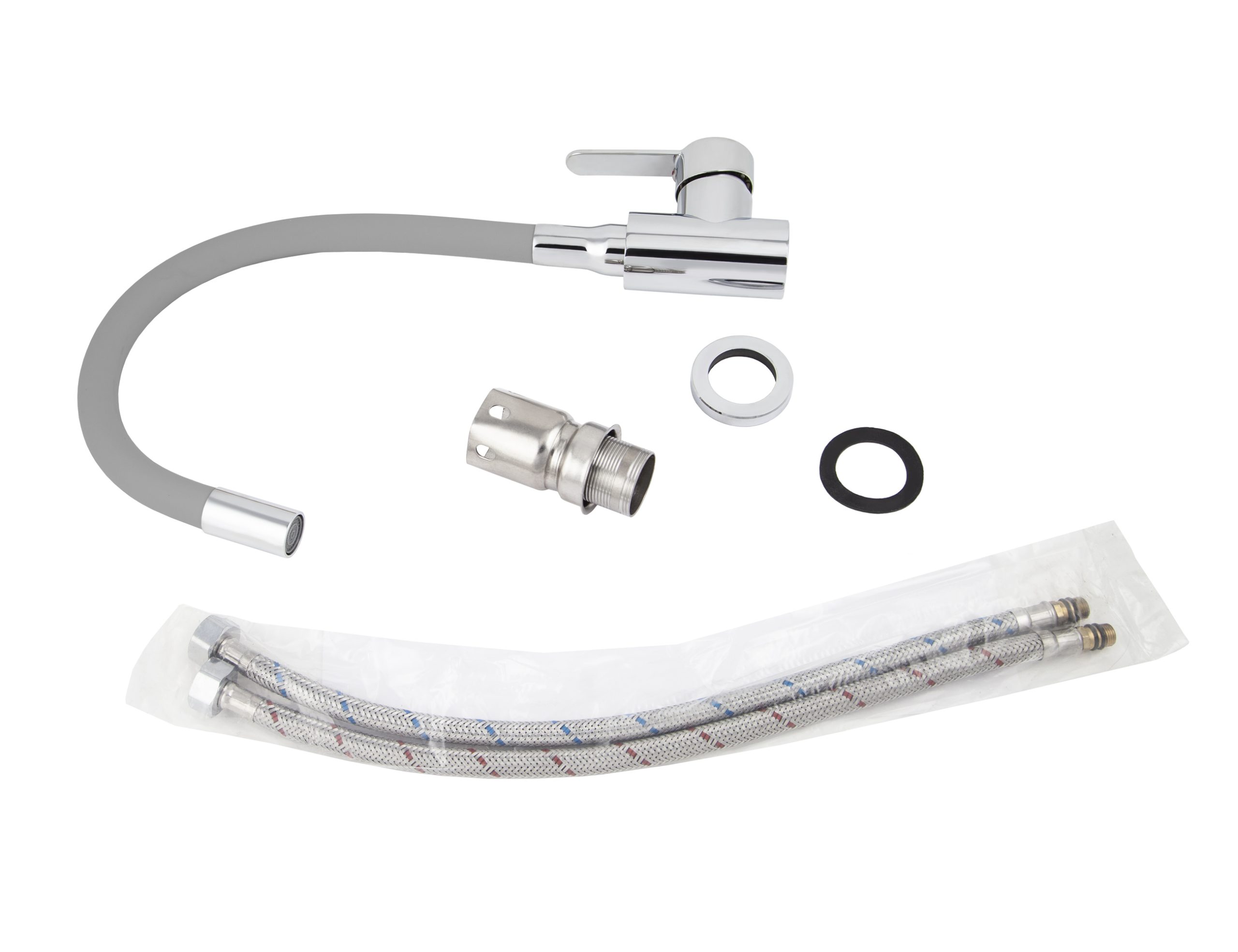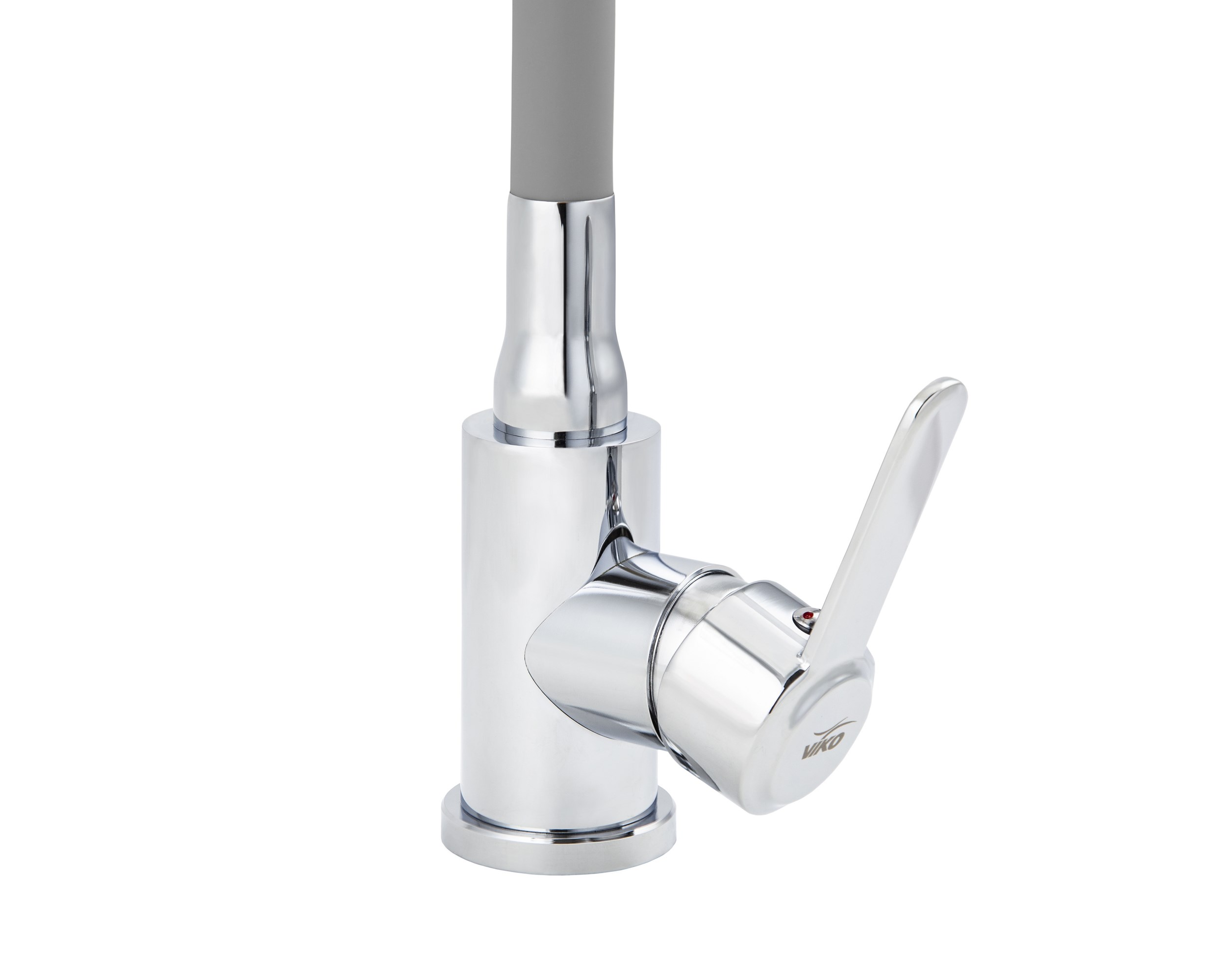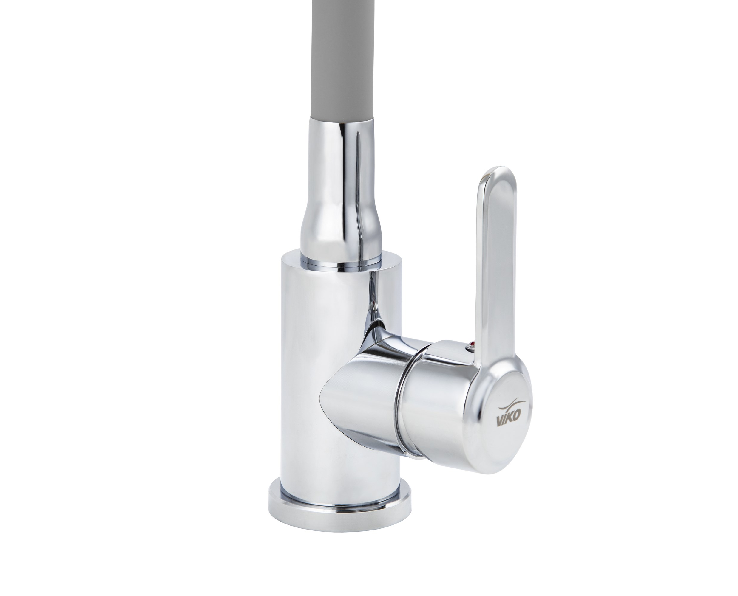 Смеситель VIKO кухня боковой с серым гибким изливом Ø35, нерж. сталь, гайка, корпус: хром