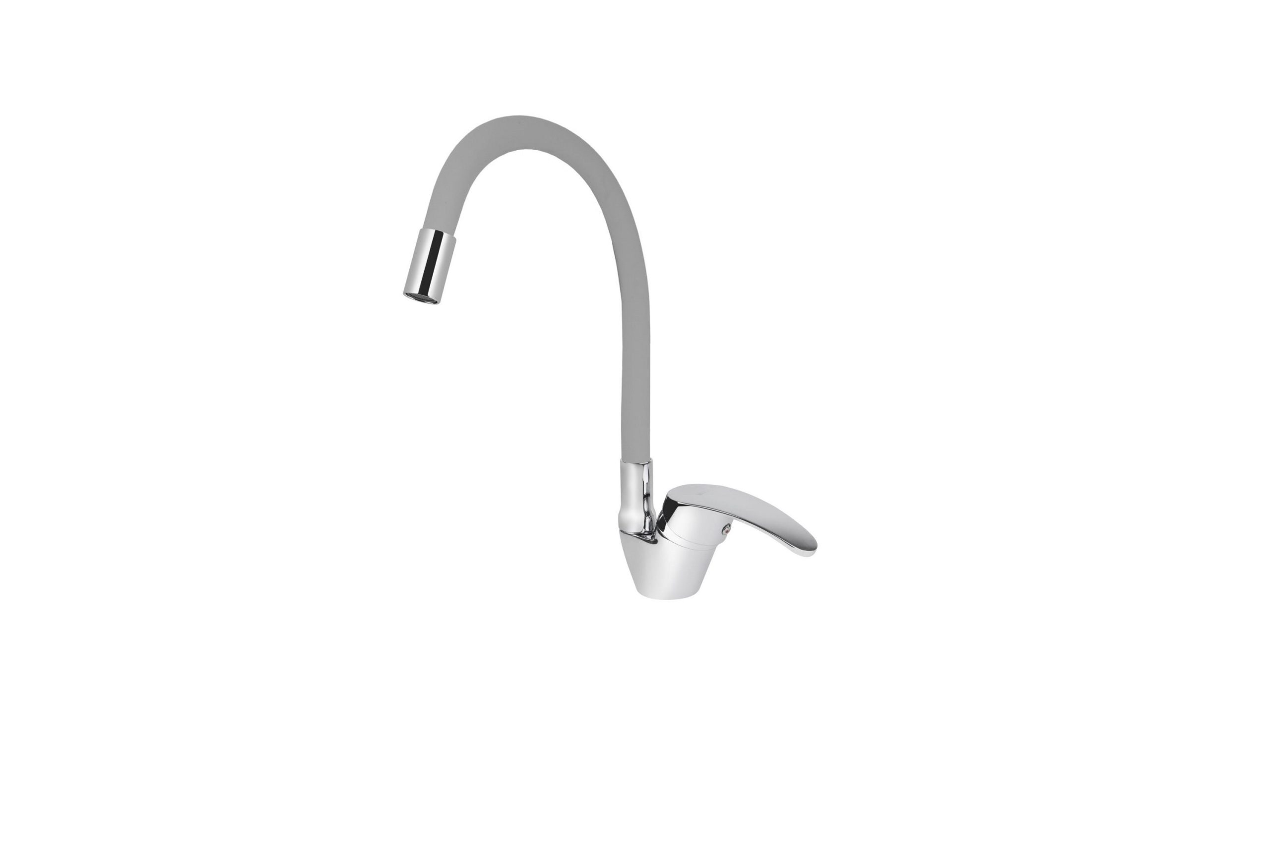 Смеситель VIKO кухня боковой с серым гибким изливом Ø40 с гайкой, хром