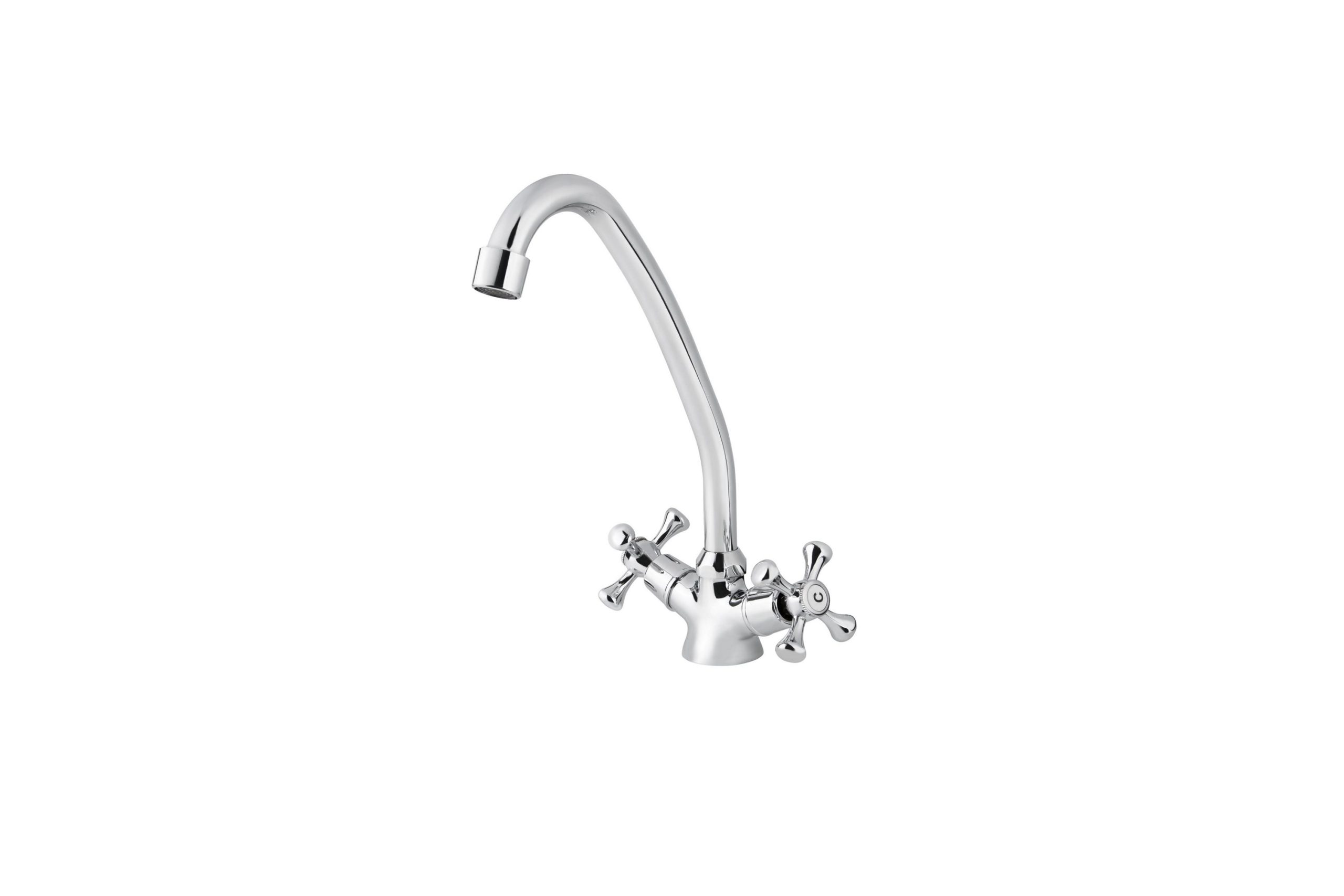 Смеситель VIKO кухня крест керамика /изогнутый нос, с гайкой