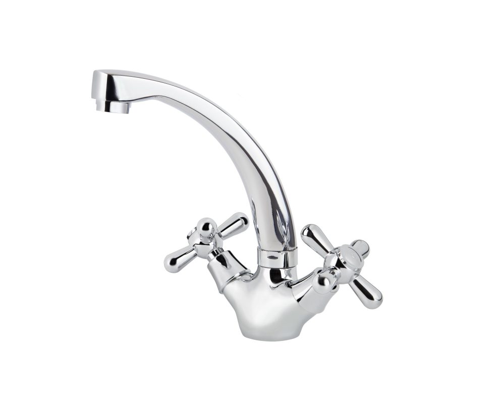 Смеситель VIKO для раковины крест керамика (поворот. низкий излив)