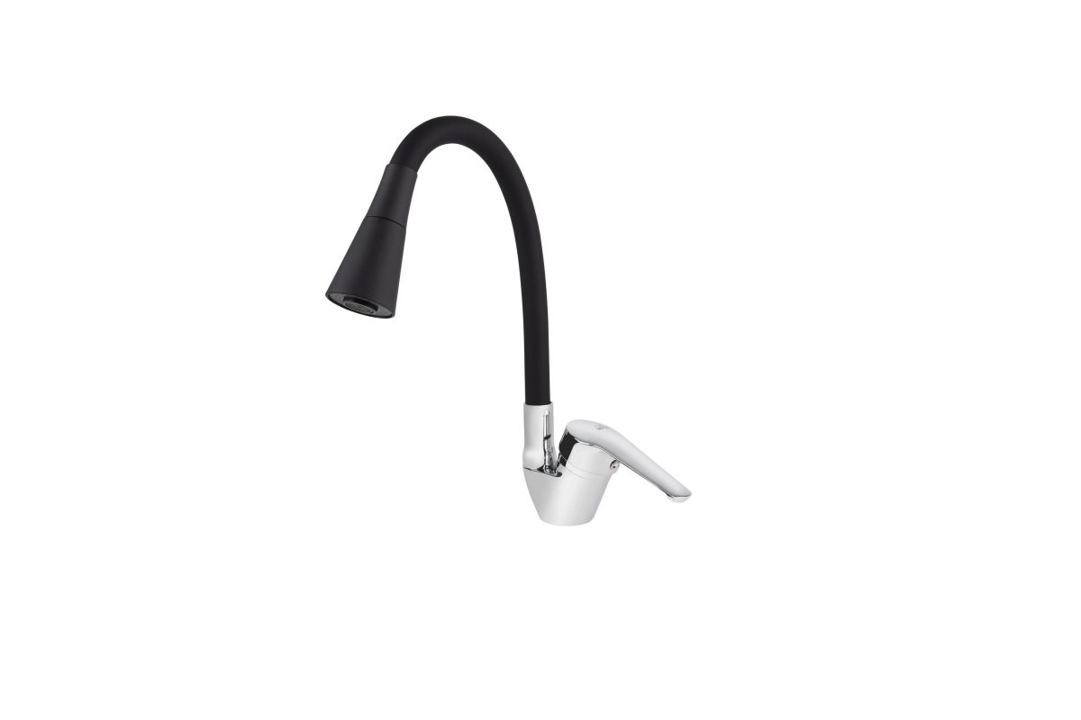 Смеситель VIKO кухня боковой Ø40 с гайкой черным гибким изливом (2-jet)