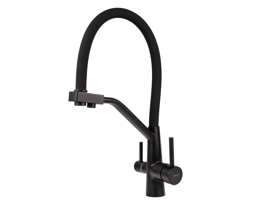 Смеситель VIKO для кухни под фильтр с гибким изливом Ø35, нерж. сталь (корпус/излив: черный мрамор/черный)