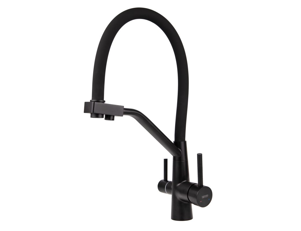 Смеситель VIKO для кухни под фильтр с гибким изливом Ø35, нерж. сталь (корпус/излив: черный матовый)