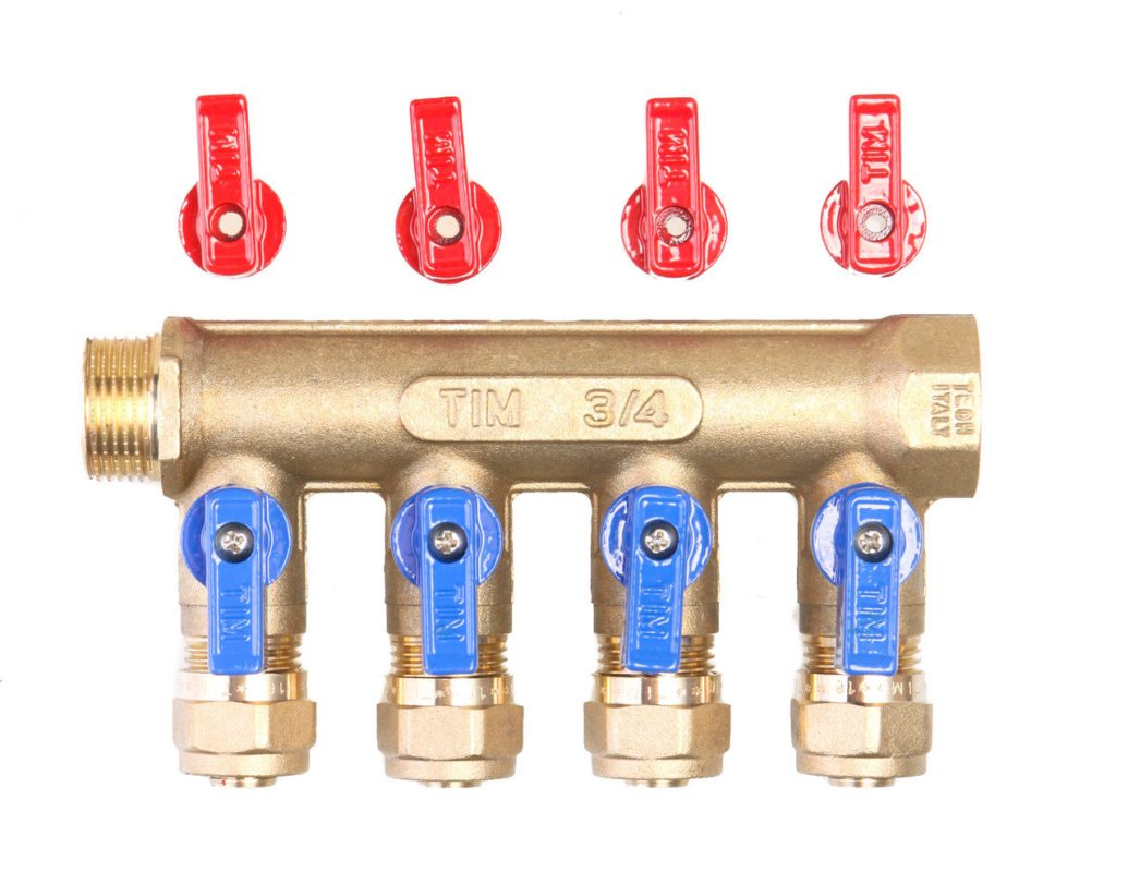 Коллектор TIM м/п 3/4″ х 16 х 4 вых.универсальный (кр+син)