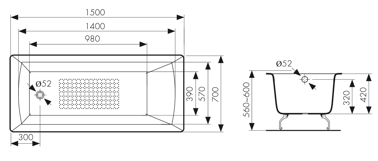 Ванна KAISER чугунная 1500*700*420
