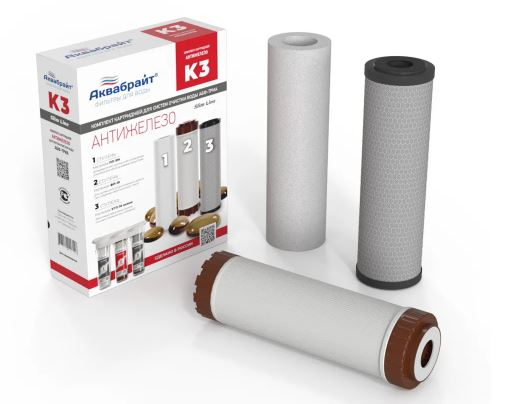 Комплект картриджей К-3 Обезжелезивание (ПП-5М, УГП-10, ФП-10) «Аквабрайт» (5)